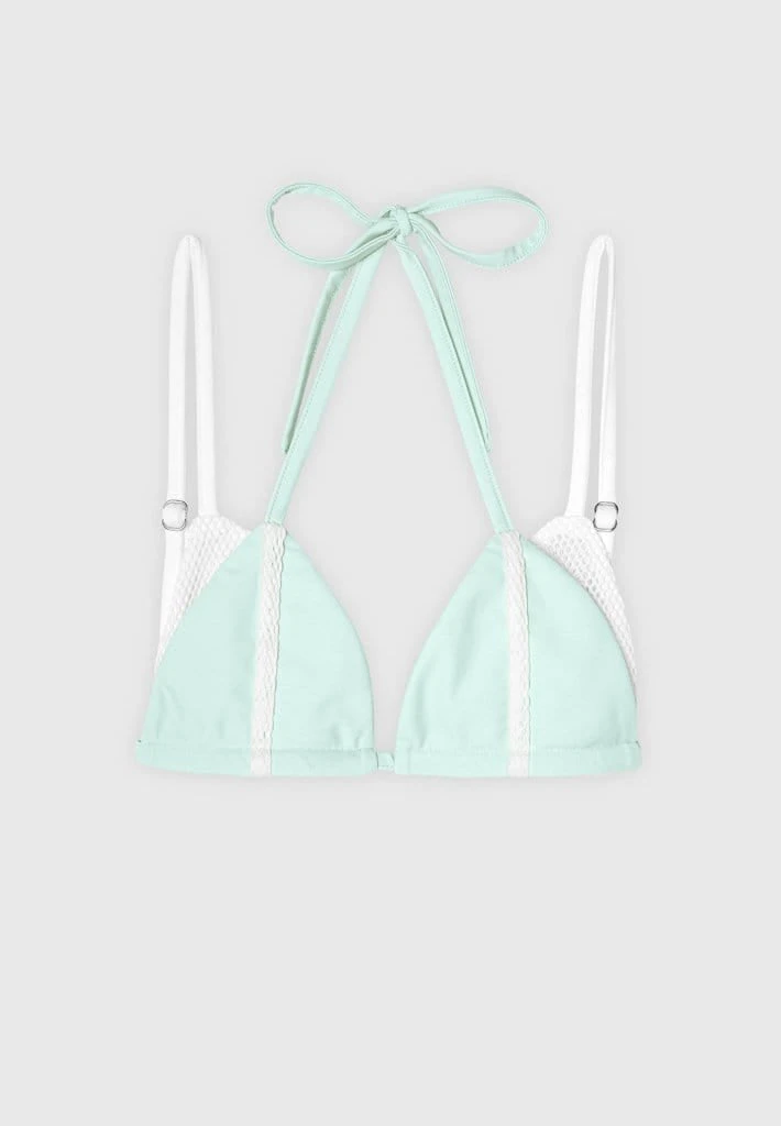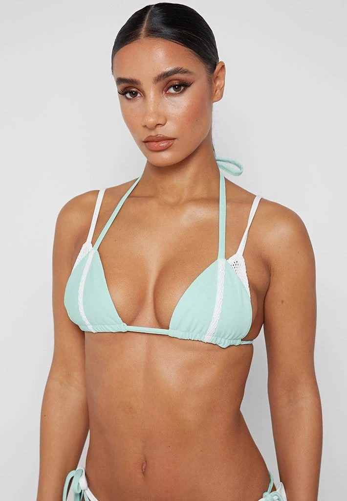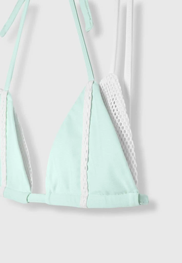 White & Mint Double Layer Mesh Triangle Bikini Top