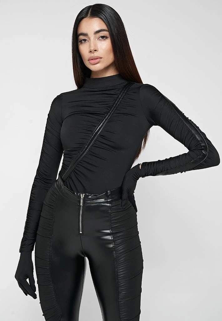 Black Glove Bodysuit with Ruching