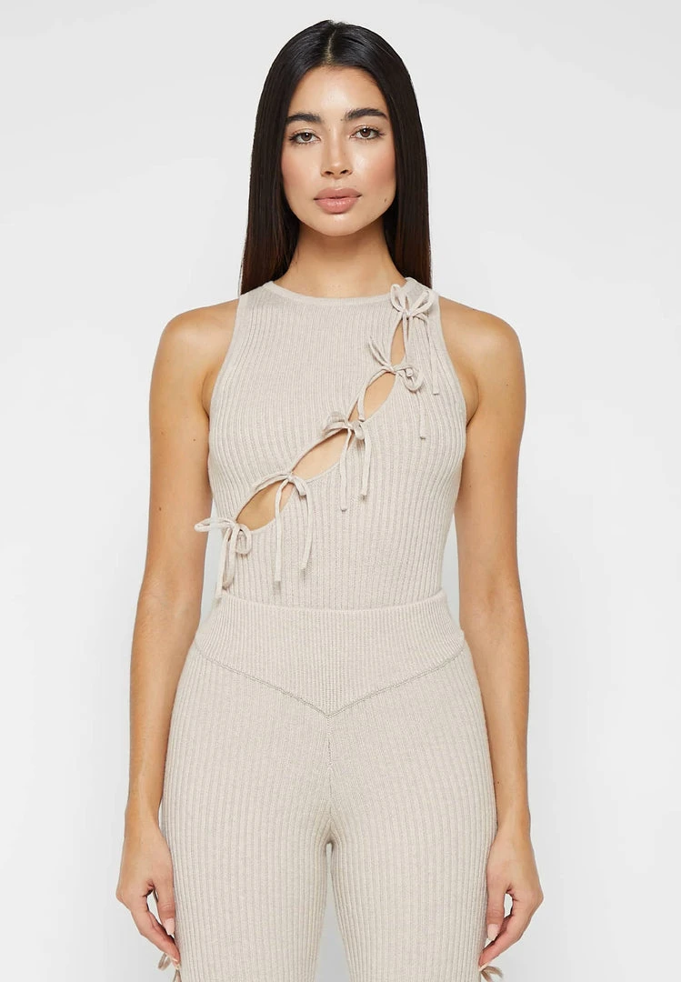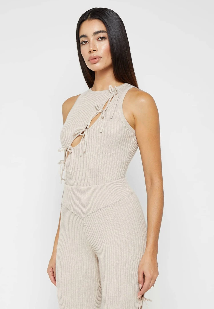 This knitted set provides the utmost comfort for any occasion while the lace up detailing adds a smart/casual twist for evenings out. This set can be worn separately to suit any preference.