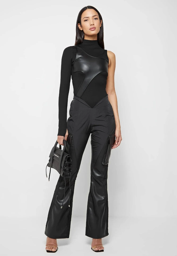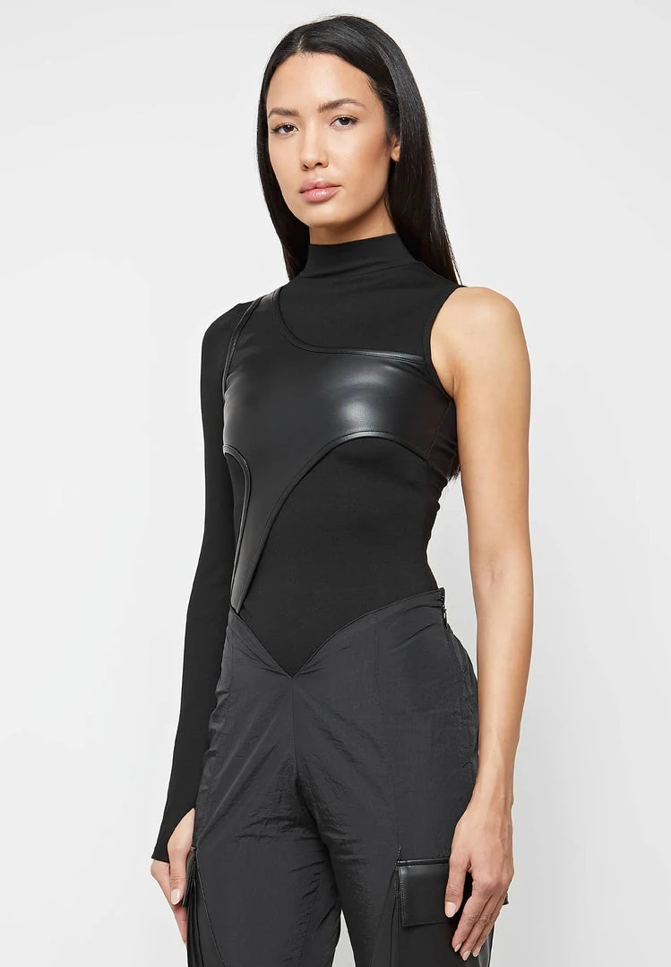 Ideal for any occasion, this bodysuit can be dressed up with a heel or with sneakers for a more casual look. The bandage material will flatter your figure.