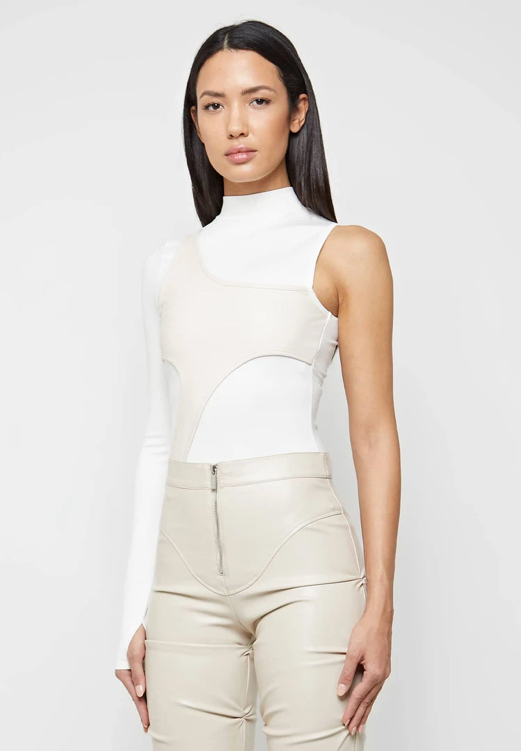 Ideal for any occasion, this bodysuit can be dressed up with a heel or with sneakers for a more casual look. The bandage material will flatter your figure.