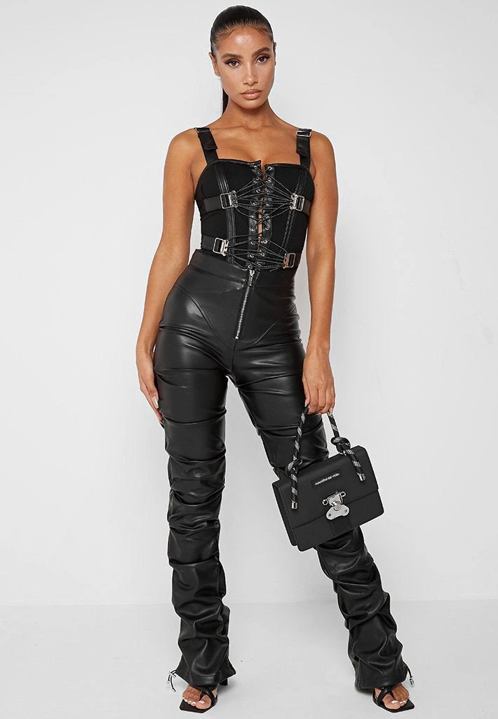 Fabric: Main: 61% Viscose, 39% Nylon Contrast: 55% Polyester, 45% PU