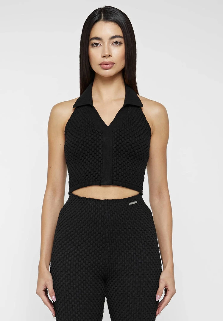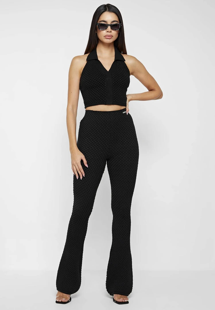In a unique bubble knit style, this top is perfect for any day to night occasion when styled with the matching flared trousers. This top can also be styled with any bottoms to suit any occasion. A true staple piece.