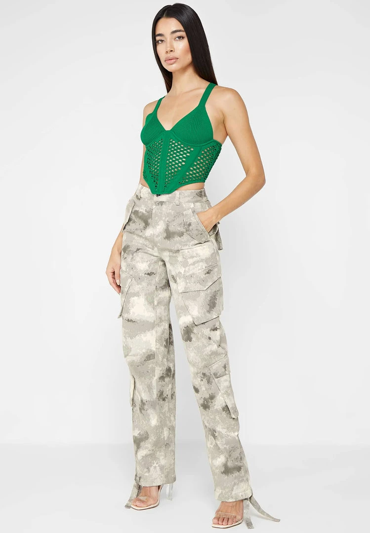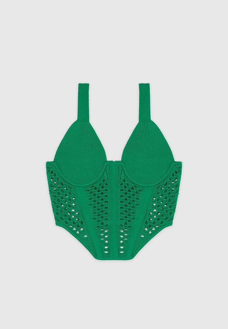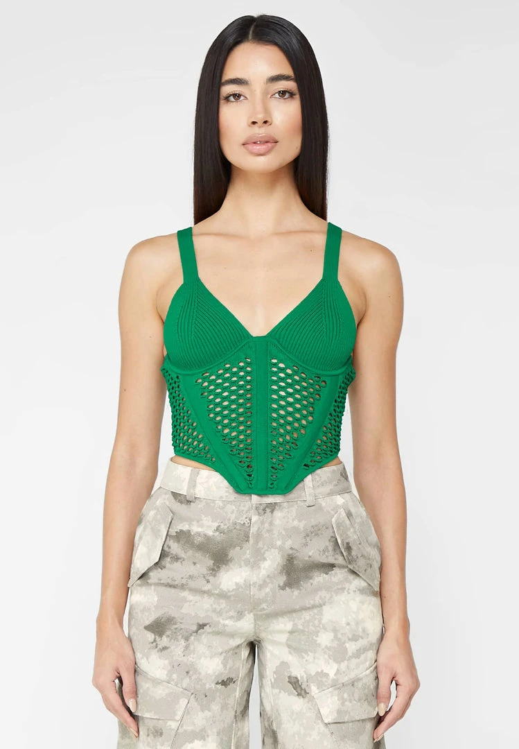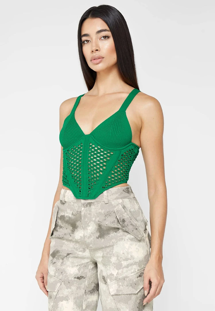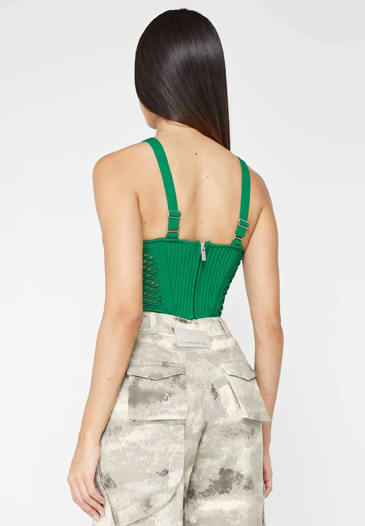 Green Crochet Knit Corset Top