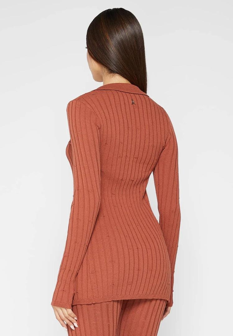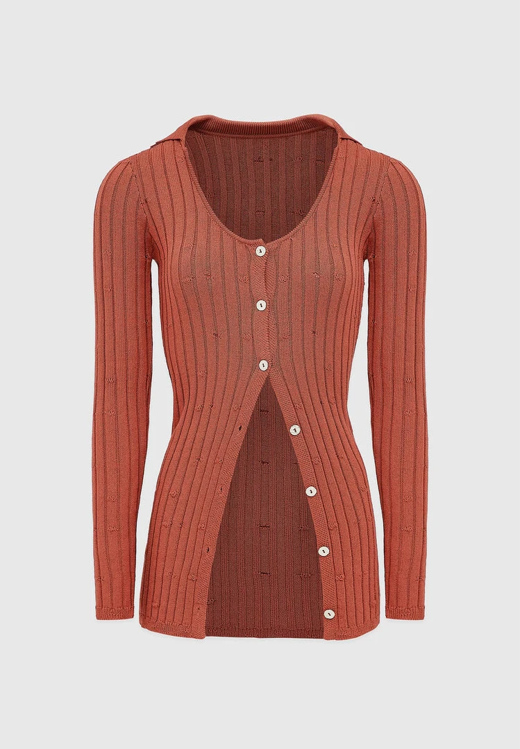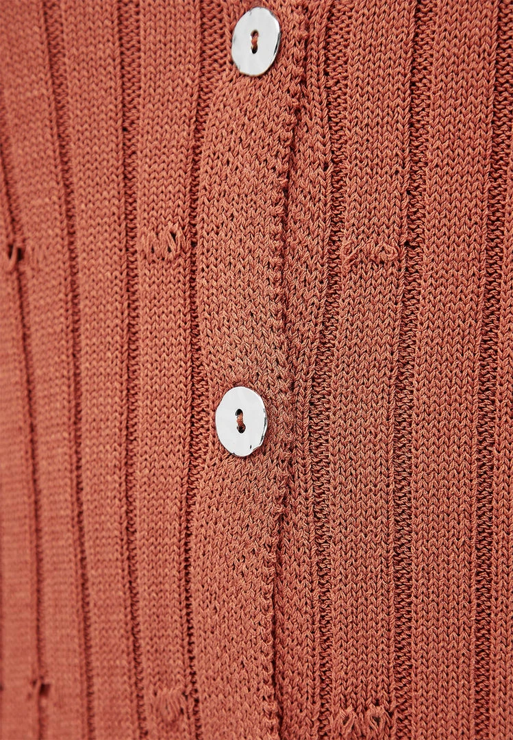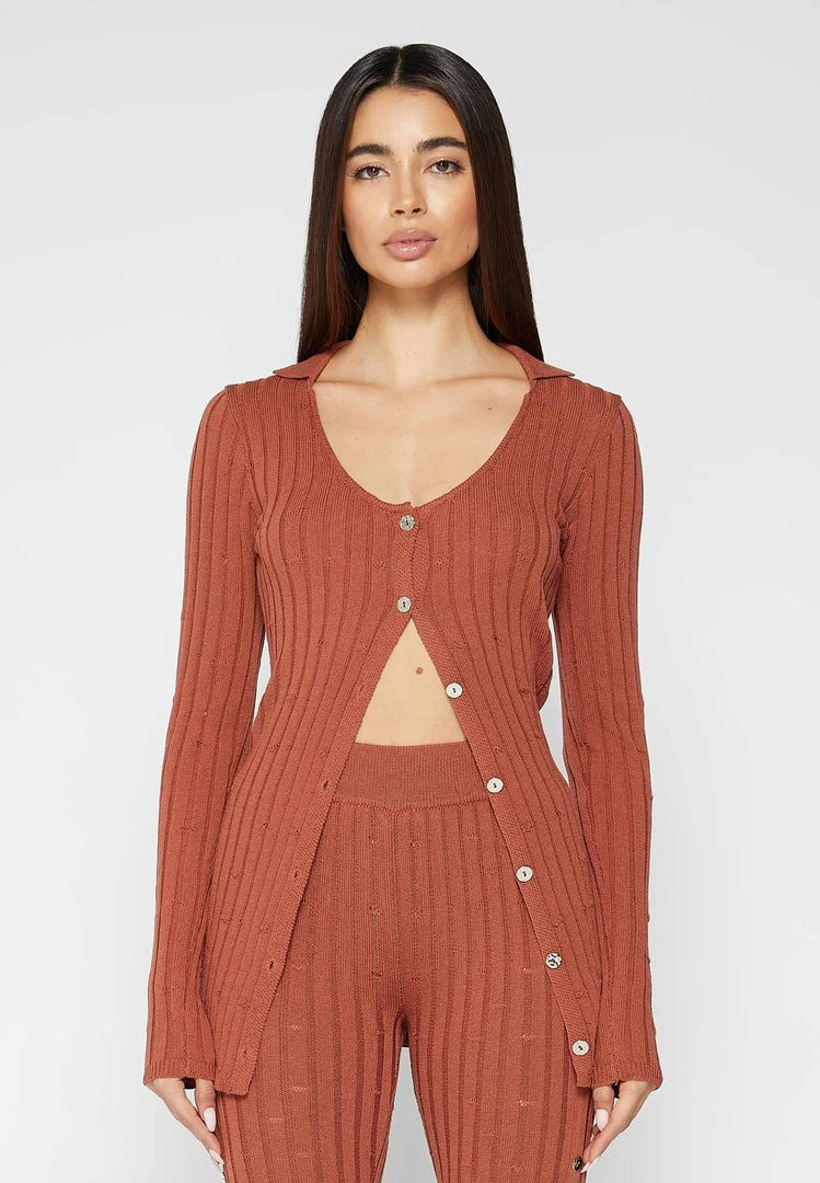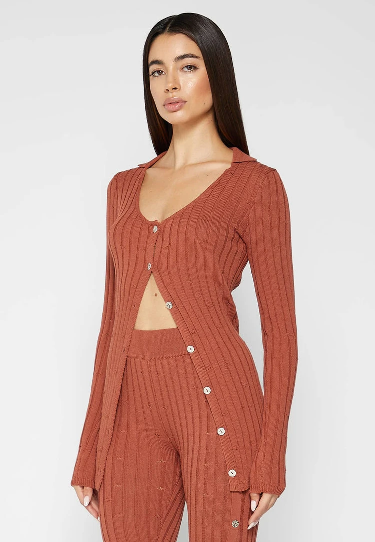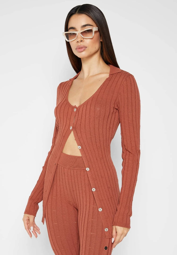 This cardigan features a longline hem that drapes perfectly over the hips. The distressing and hammered buttons add a casual aspect to the cardigan making this perfect for day to night occasions when styled with heels.