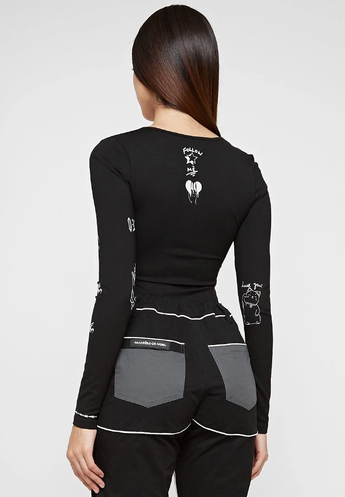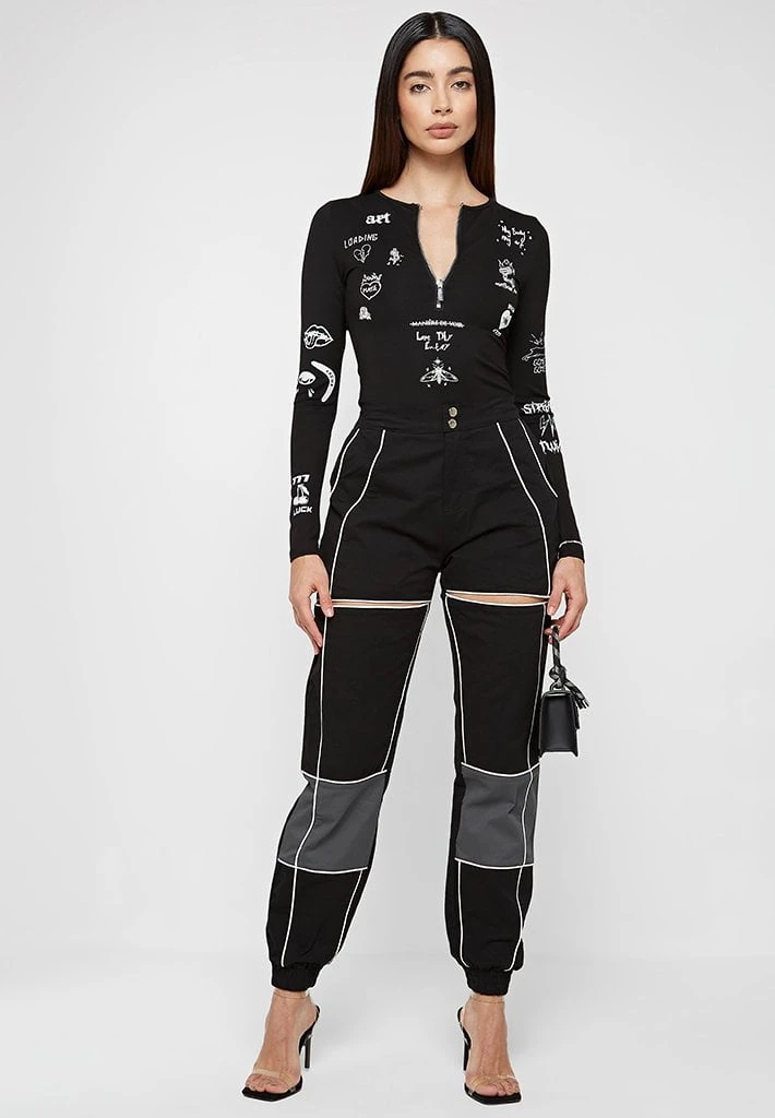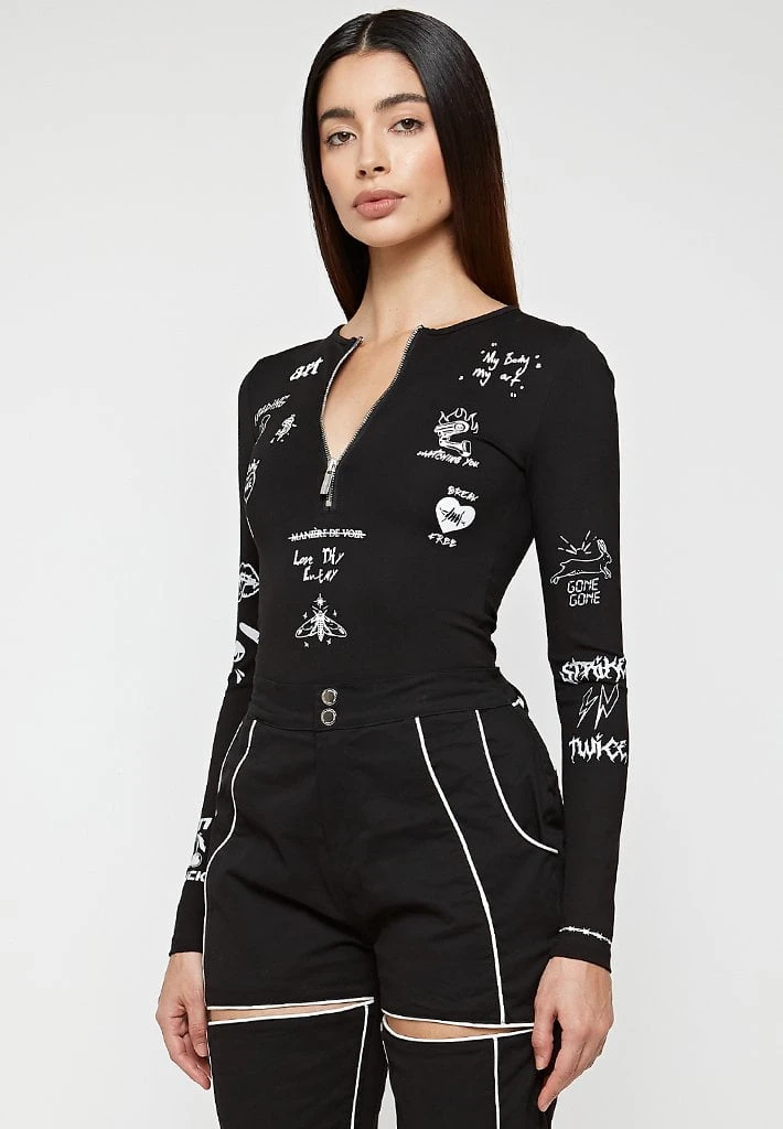Black Graffiti Print Bodysuit