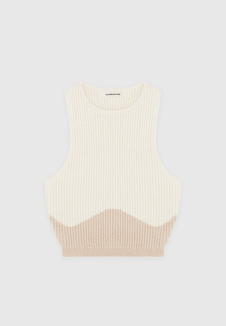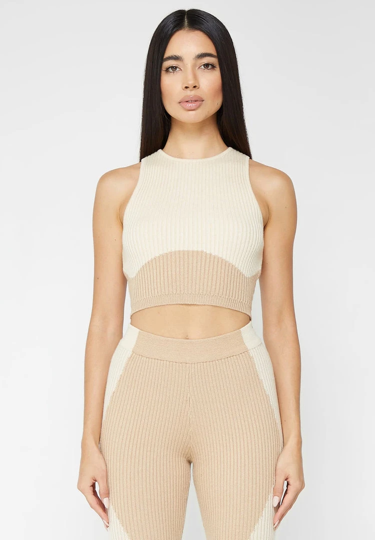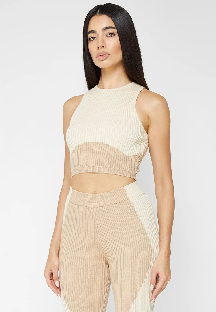 Beige/Beige Knitted Contour Crop Top
