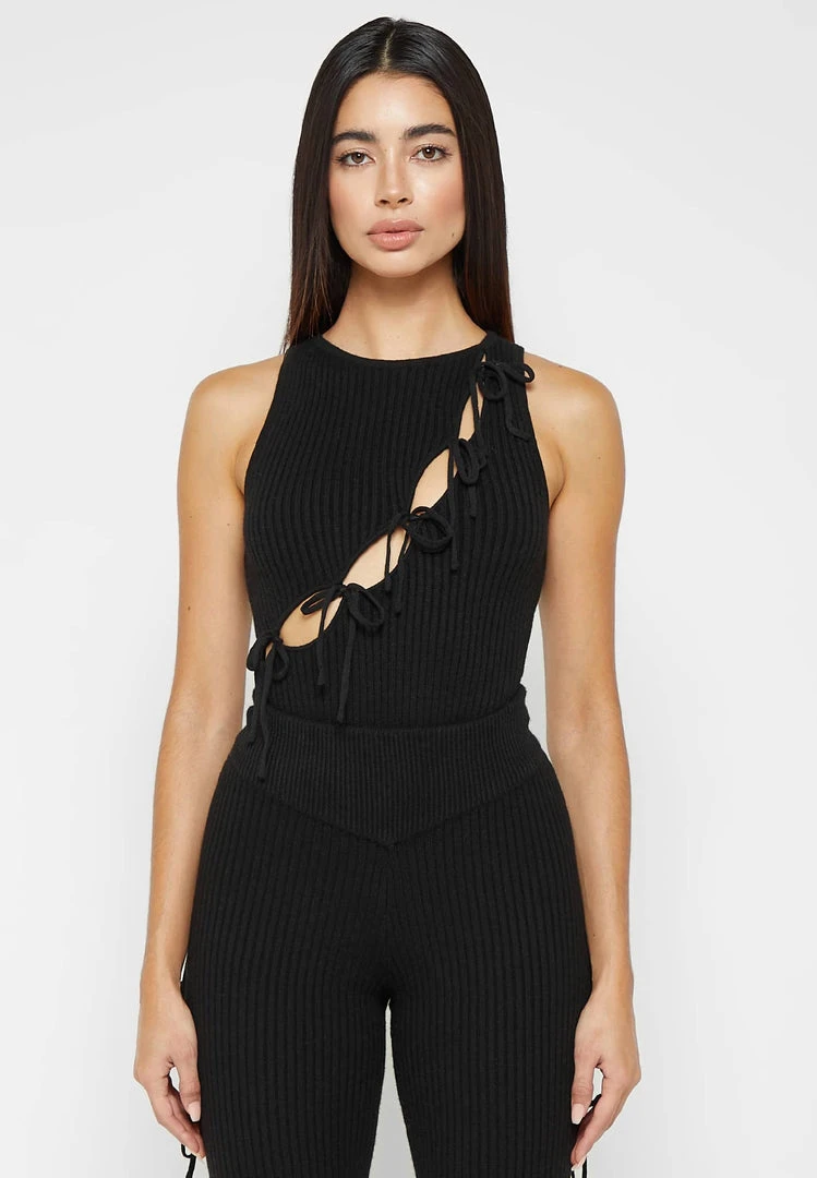 This knitted set provides the utmost comfort for any occasion while the lace up detailing adds a smart/casual twist for evenings out. This set can be worn separately to suit any preference.