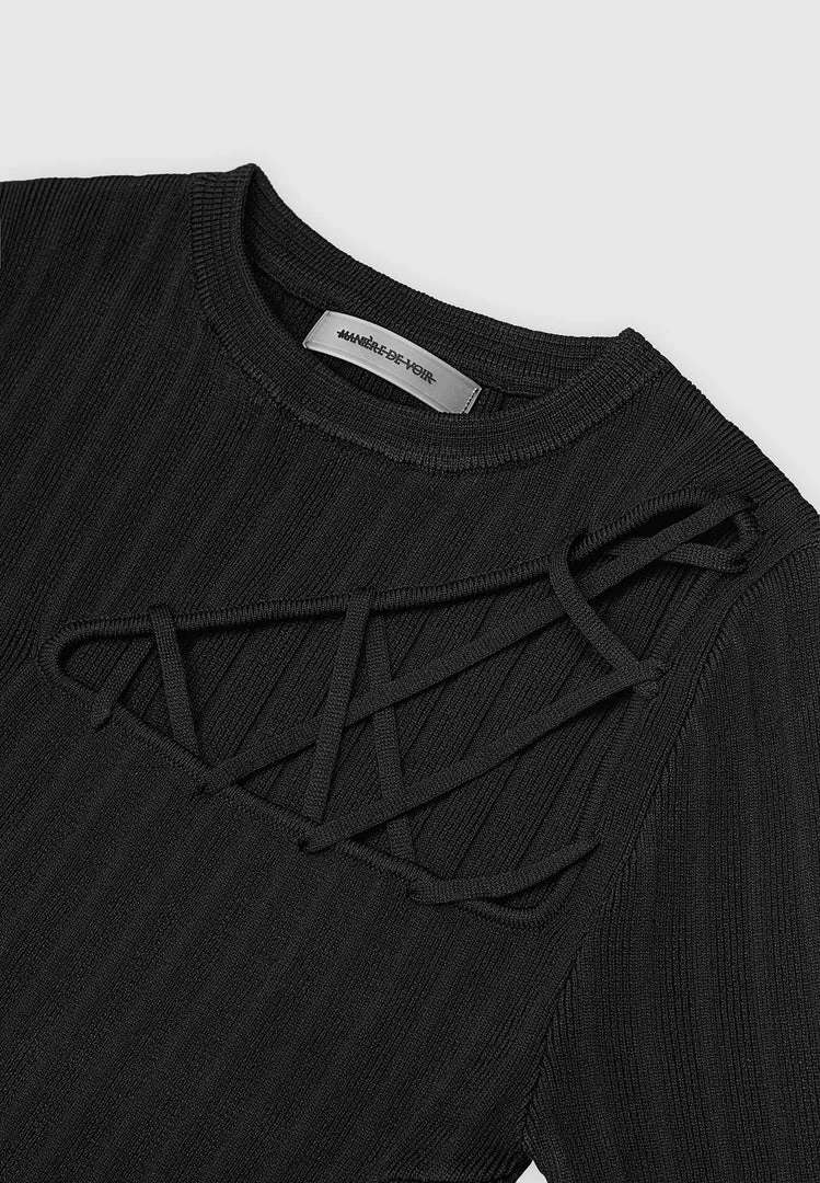 Model is 5’8″, 32.5″ Bust, 24″ Waist, 32″ High Hip, 37.5″ Low Hip and Wears UK Size XS