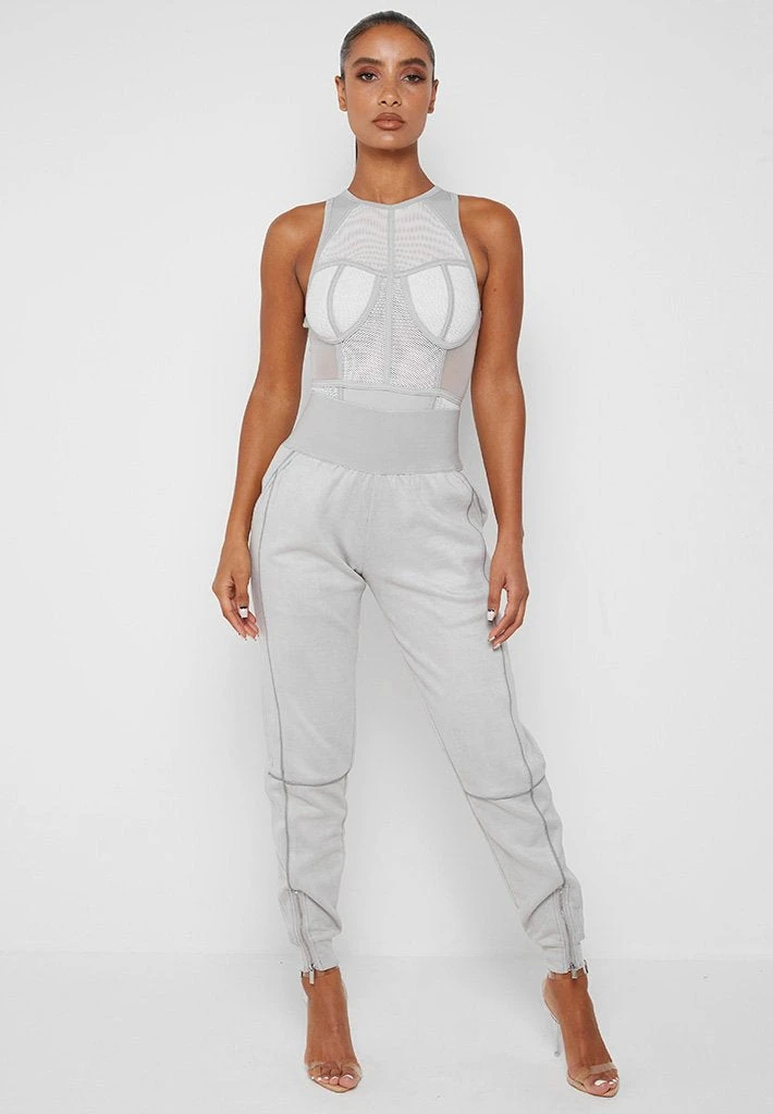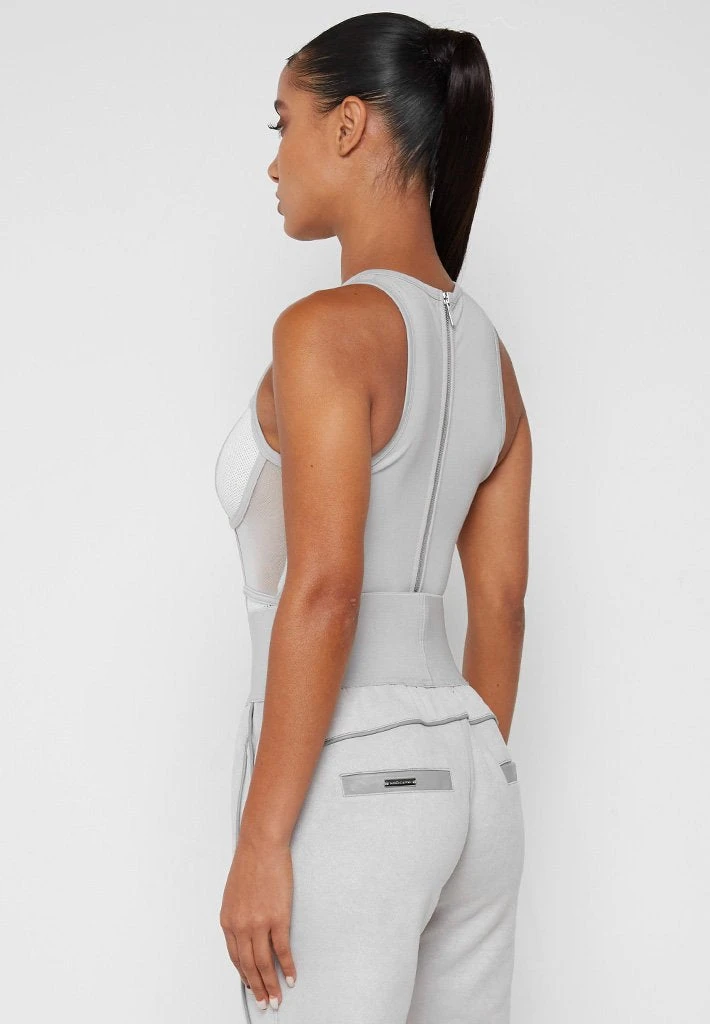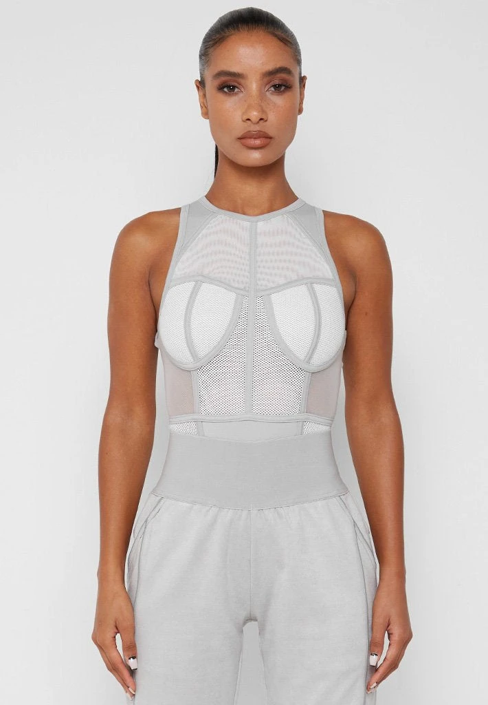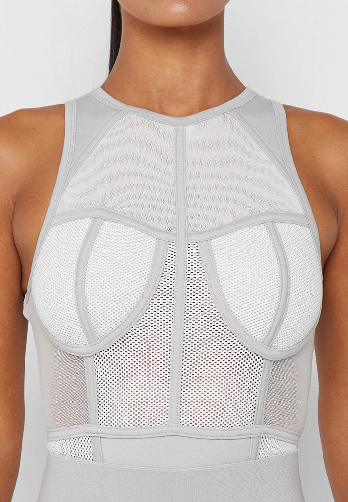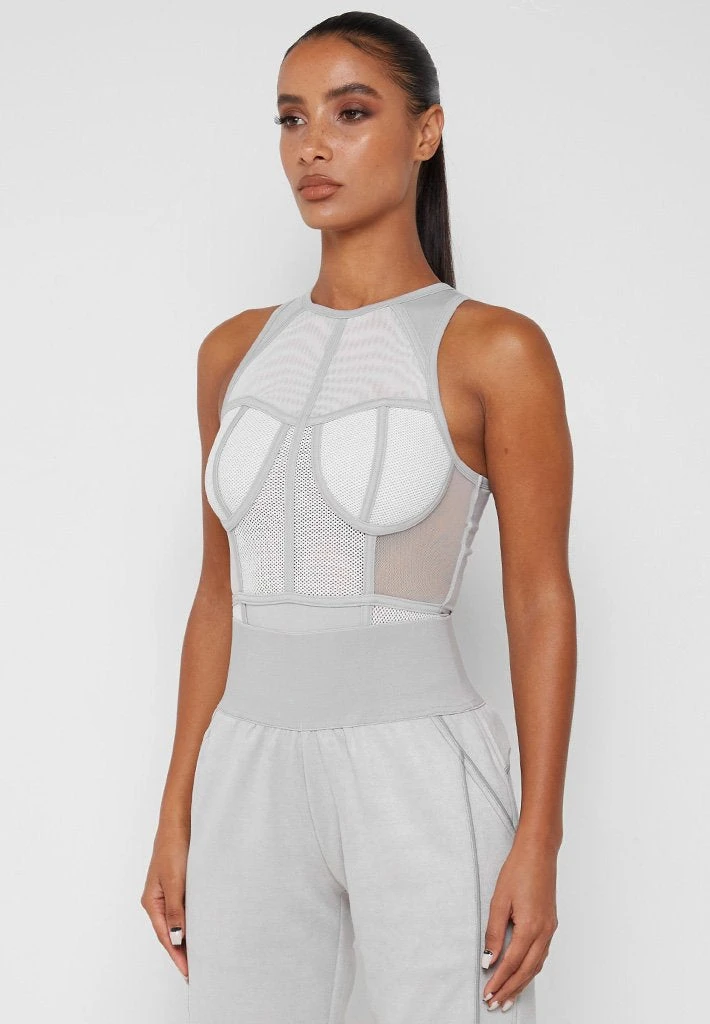 Grey Mesh Racer Neck Bodysuit