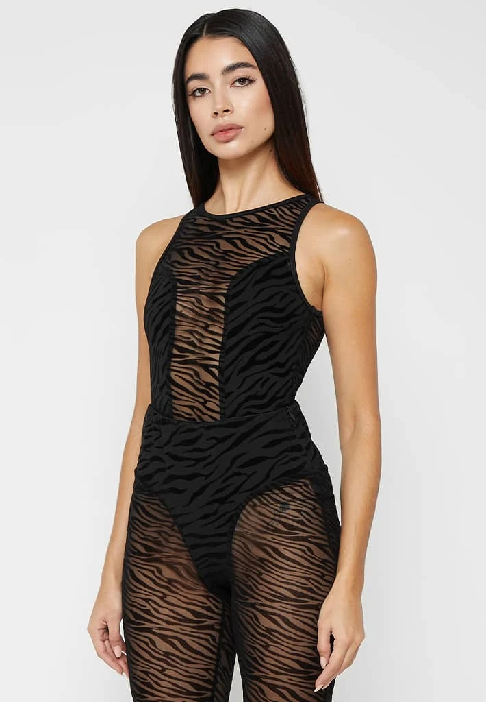 Featuring waist cinching bandage detailing, this zebra print mesh set will give you a sexy hourglass silhouette.