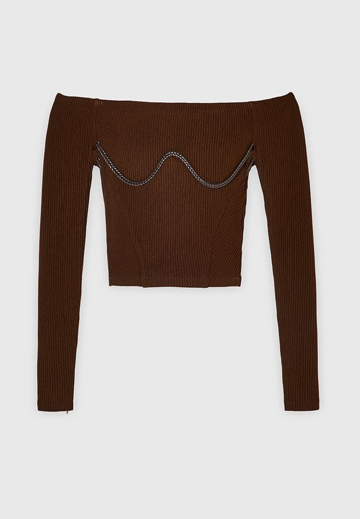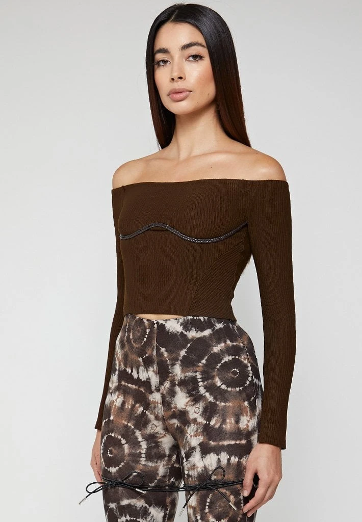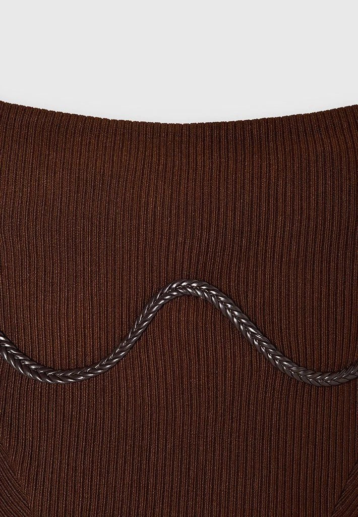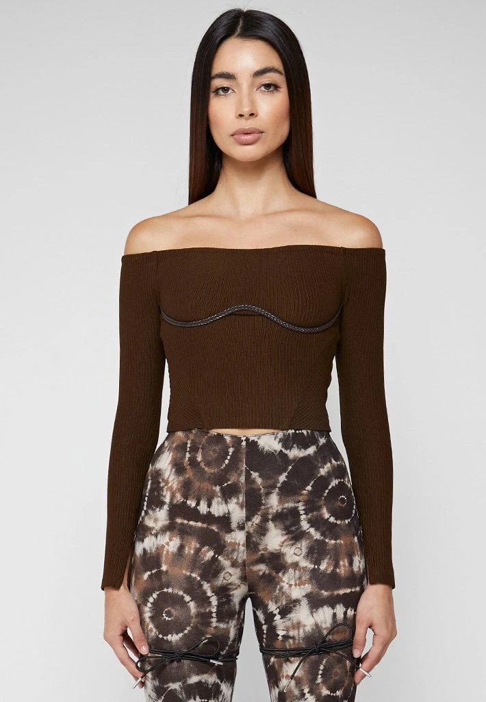 As a core styling piece, this crop top is made out of our lightweight ribbed fabric for a fitted silhouette that still keeps you cosy. The vegan leather plait shapes the bust with the directional rib at the waist contouring the figure. We have included an invisible zip at the sleeve for those who prefer a flare sleeve or vice versa. This top also has internal grips to keep this comfortable and minimising readjustment.