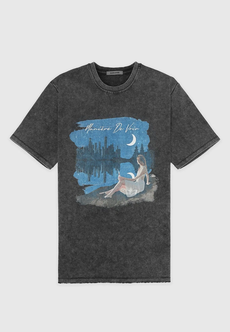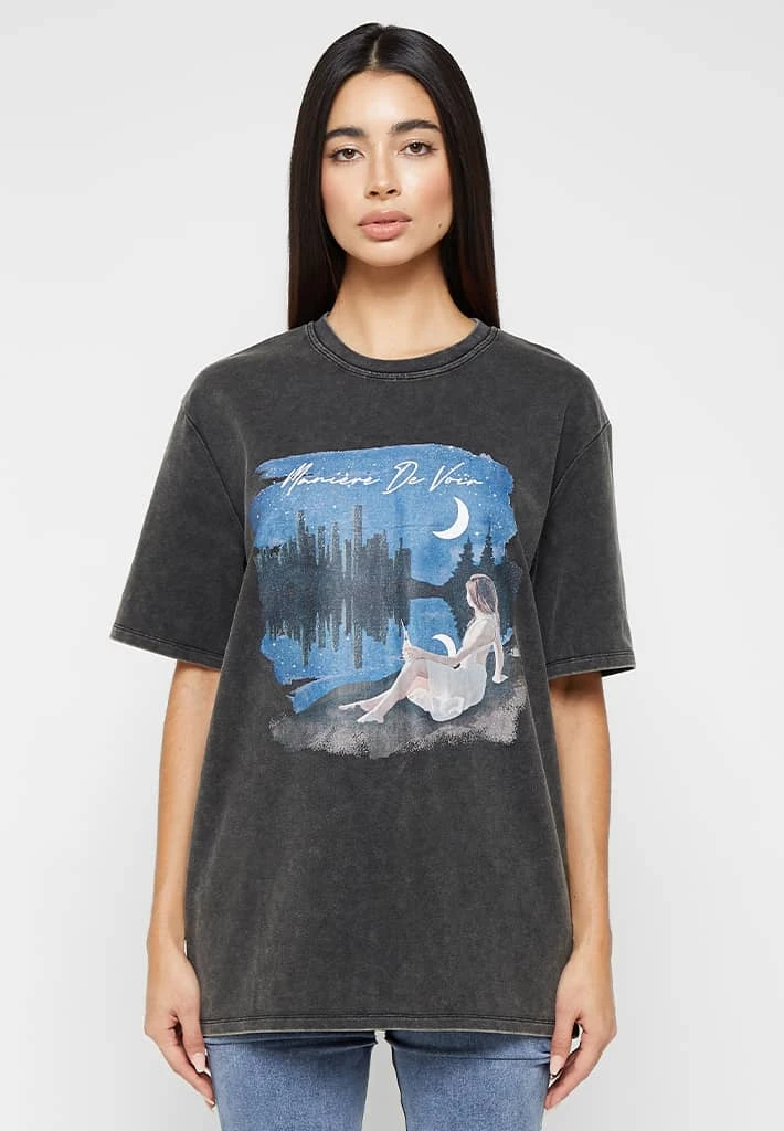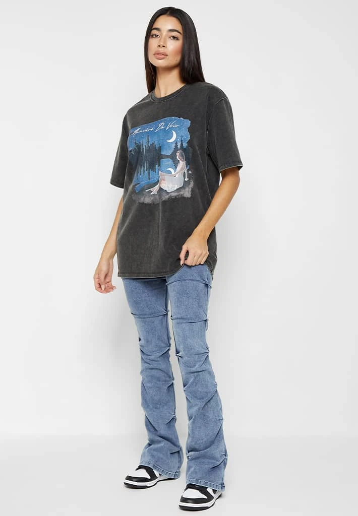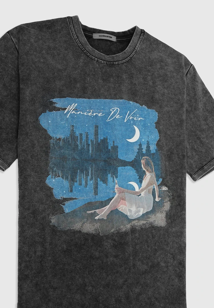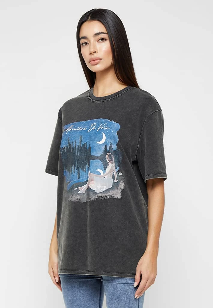 Washed Black Starry Night Graphic T-Shirt