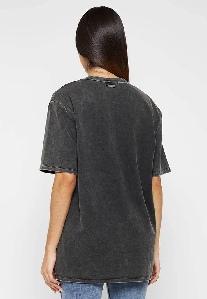 Featuring our unique in-house designed print, this distressed oversized T-shirt can be worn with sneakers or heels for those wanting a more casual look.