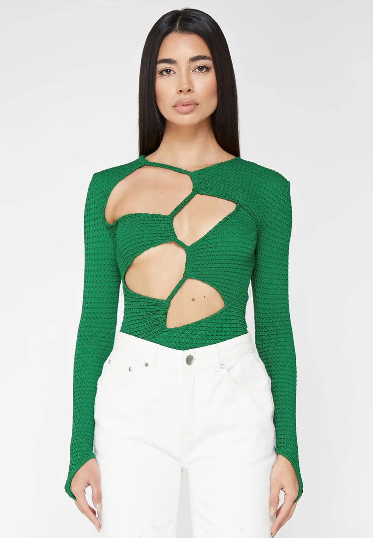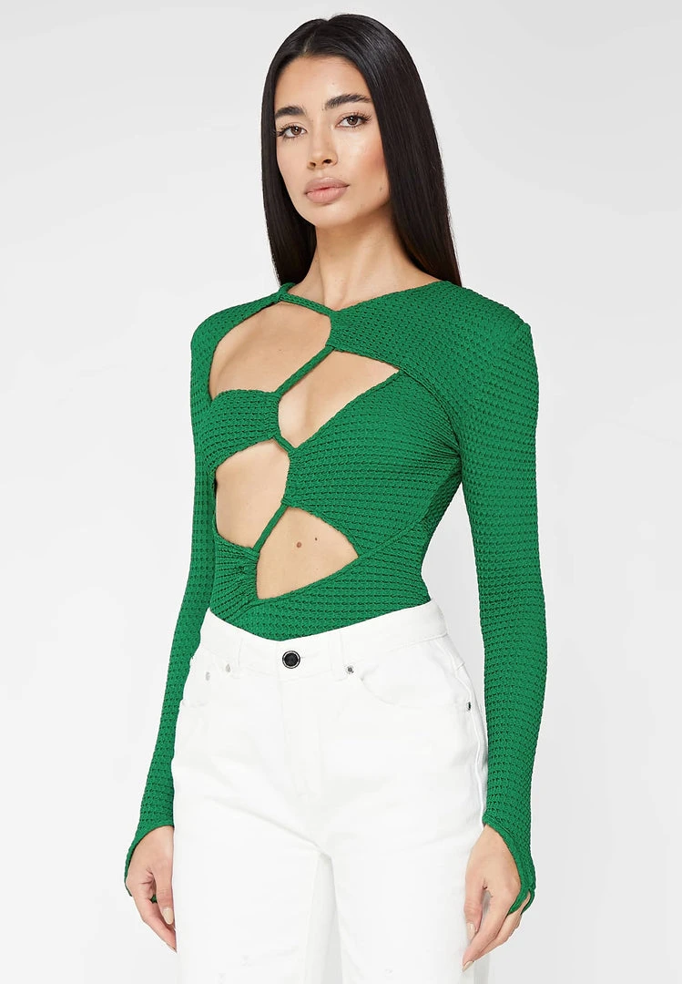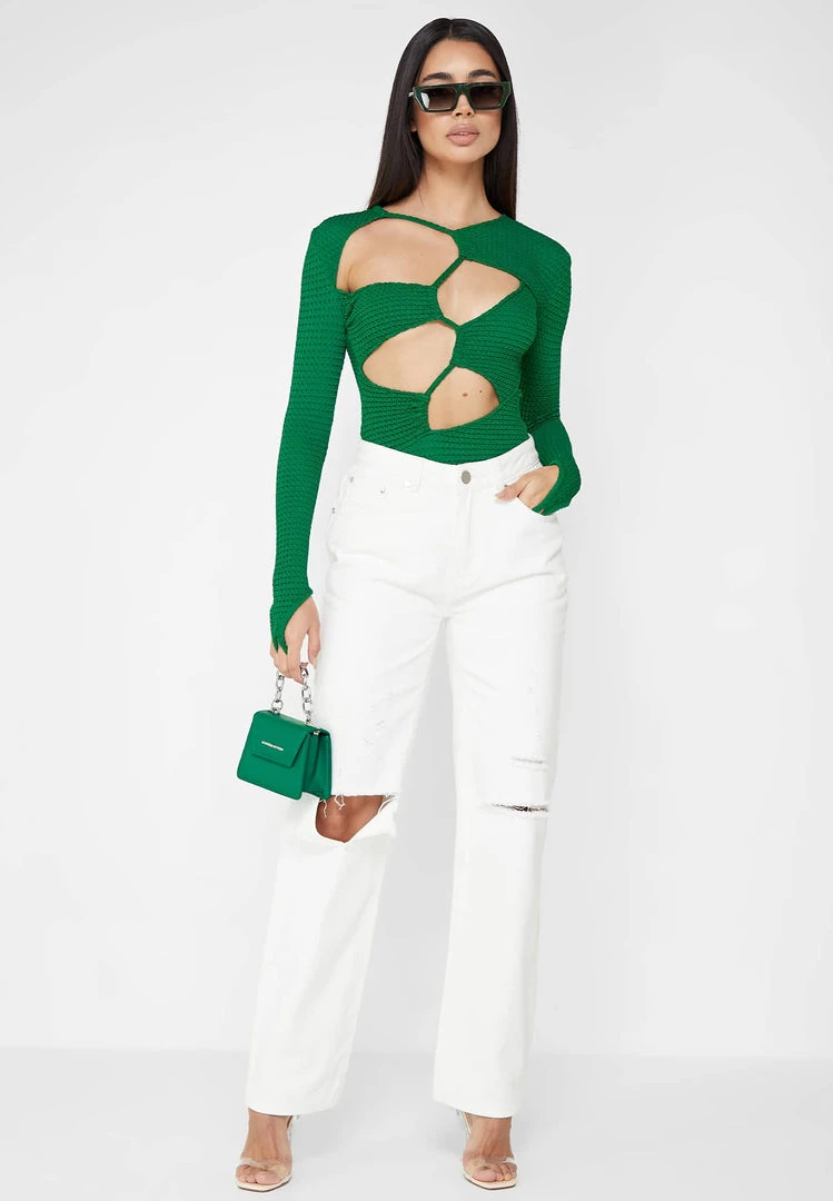 Featuring cut out detailing, this unique design seductively shows off your skin without being too revealing while also contouring your body.
