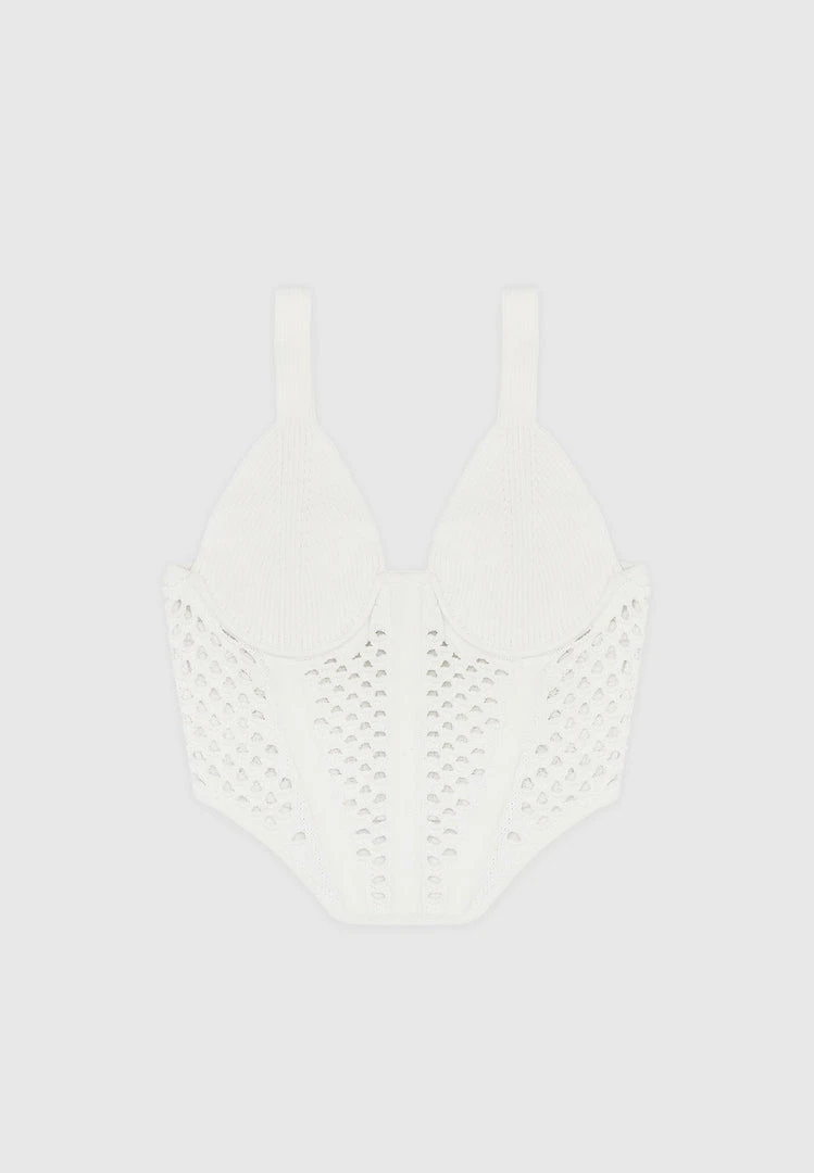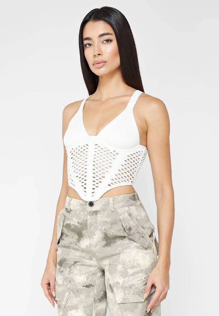 Off White Crochet Knit Corset Top