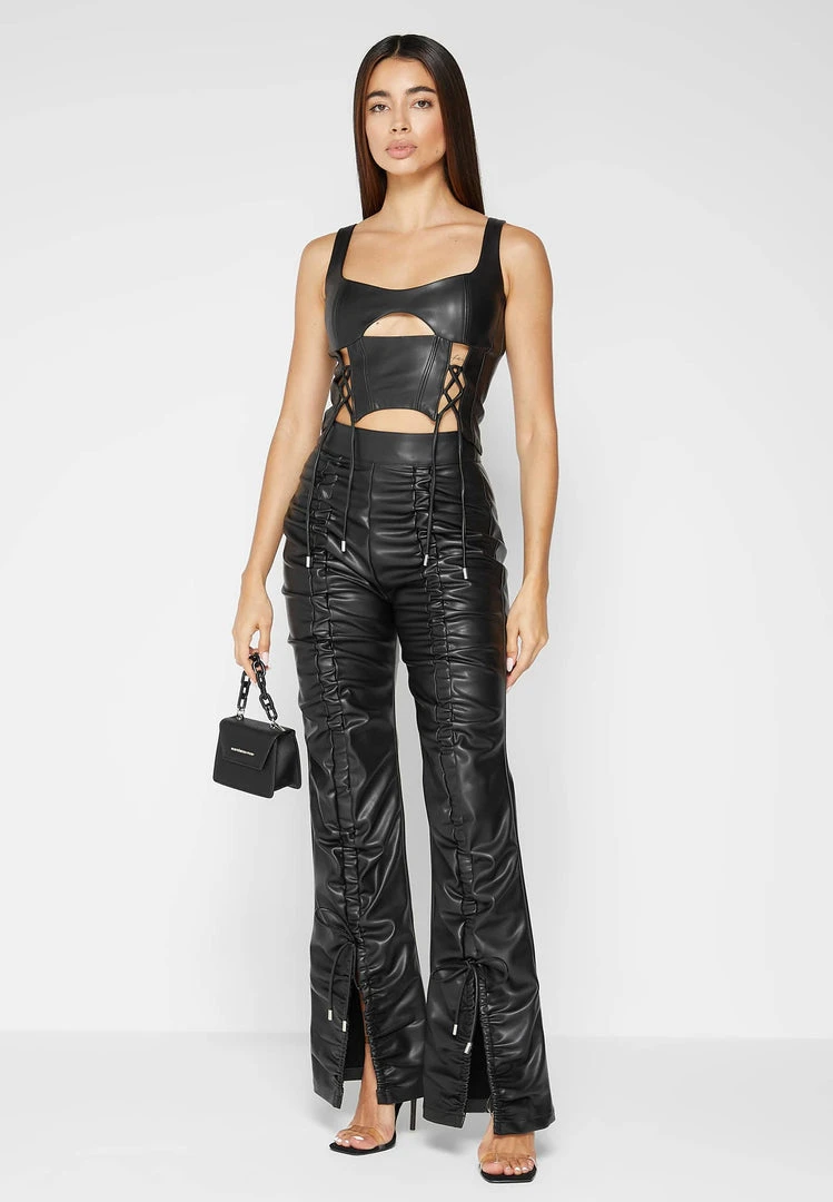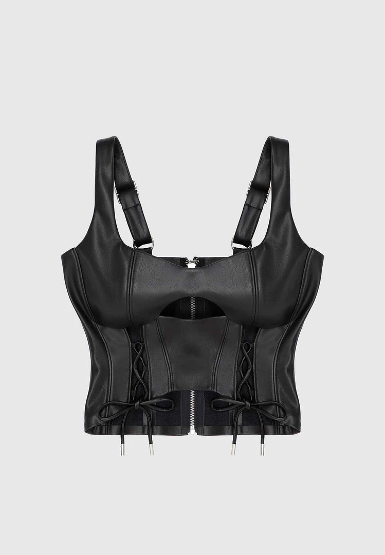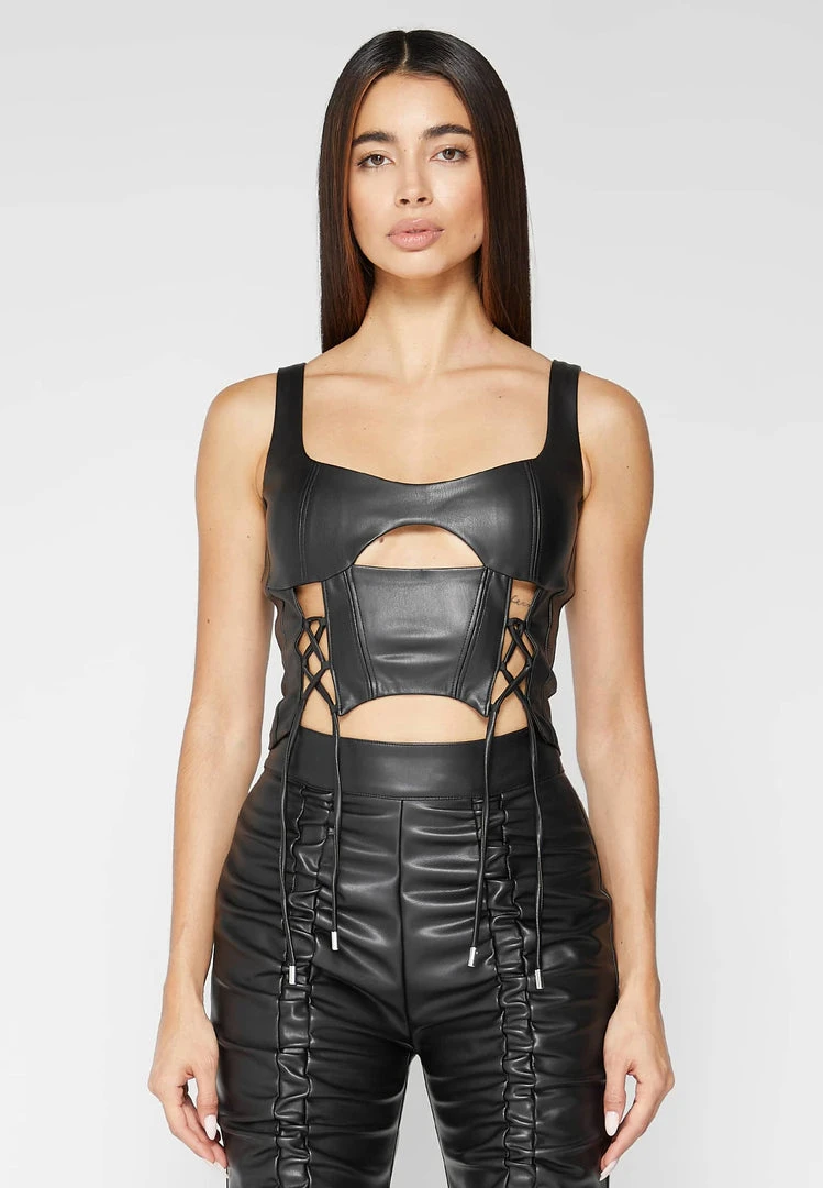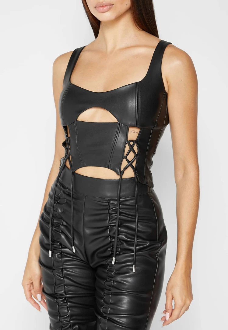Black Vegan Leather Lace Up Corset Top