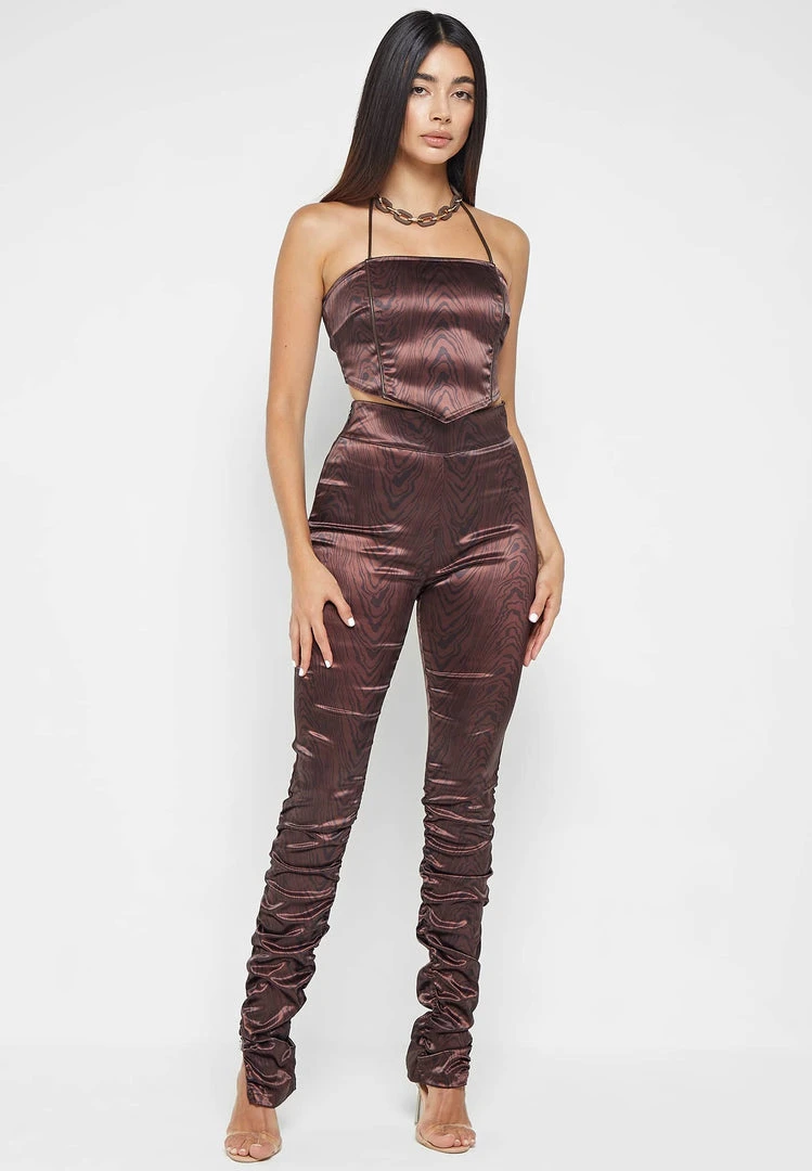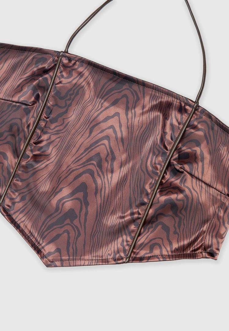 Brown Woodgrain Satin Handkerchief Top