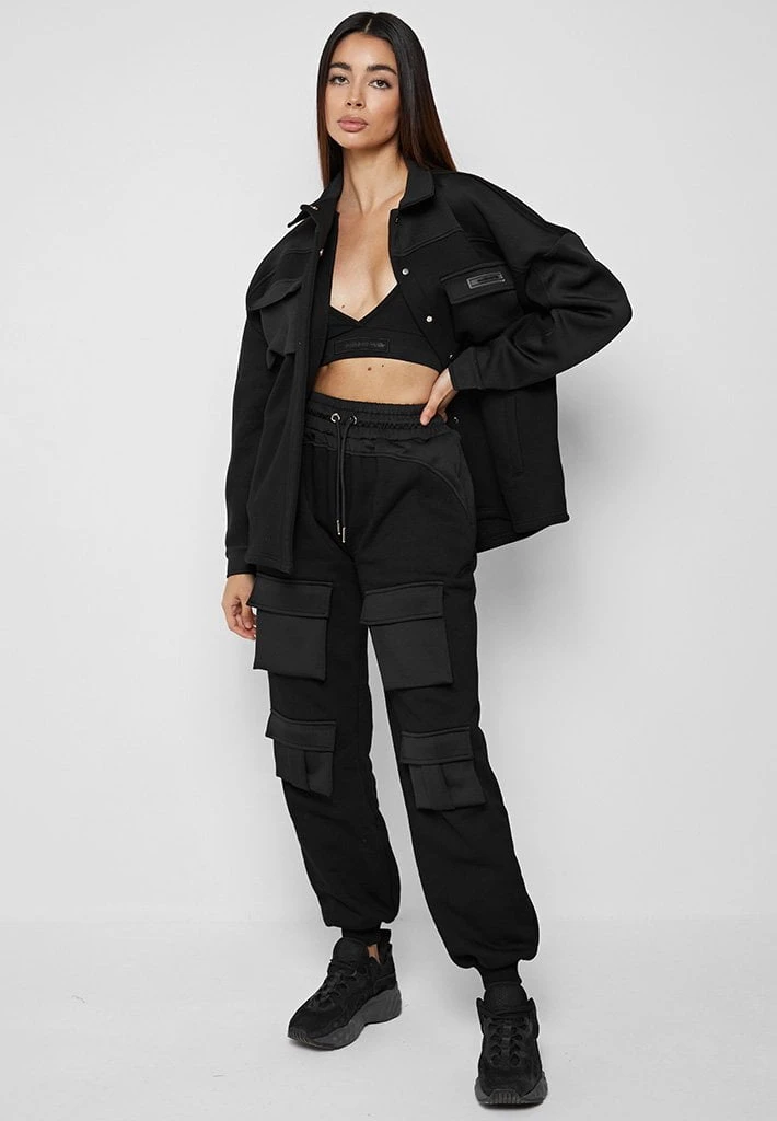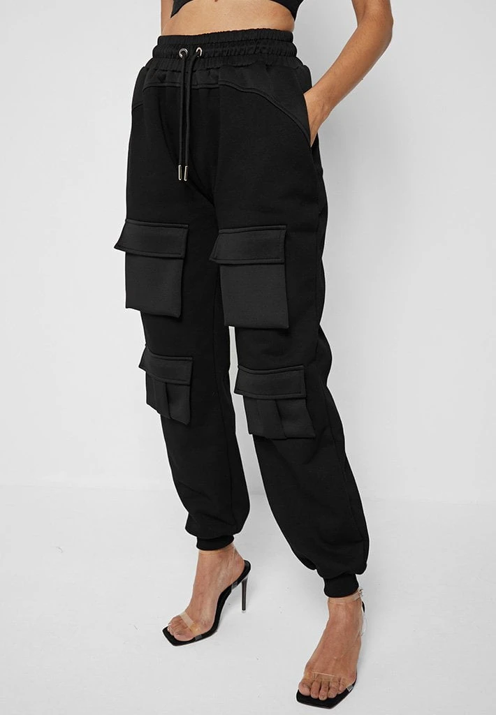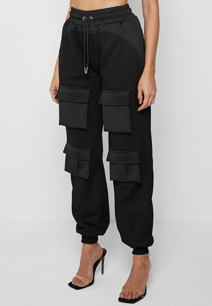 Black Neoprene Cargo Pocket Joggers