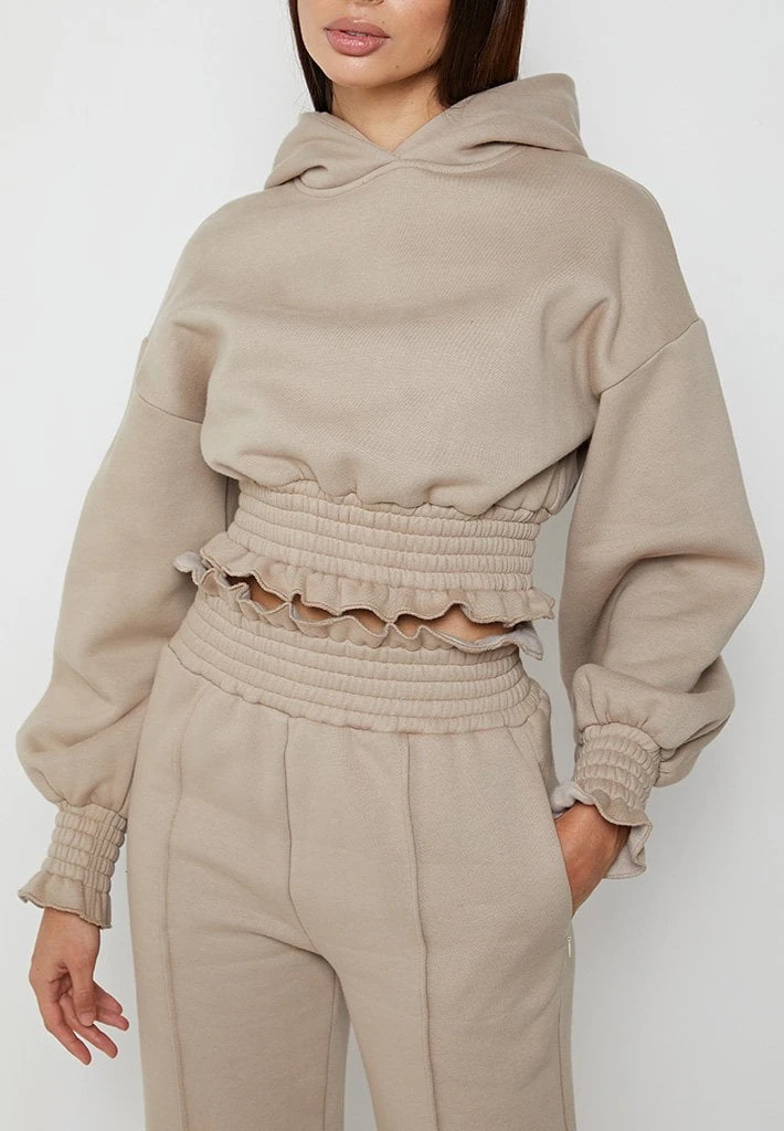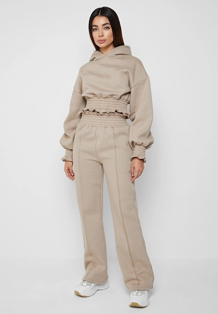 The Paperbag Tracksuit is an elevated twist on the conventional oversized tracksuit. The waistband ruffle detail shapes the body with the elastication giving room for comfort. In an oversized silhouette with a fitted waistband, this style can be dressed down with trainers or for a night out in heels.