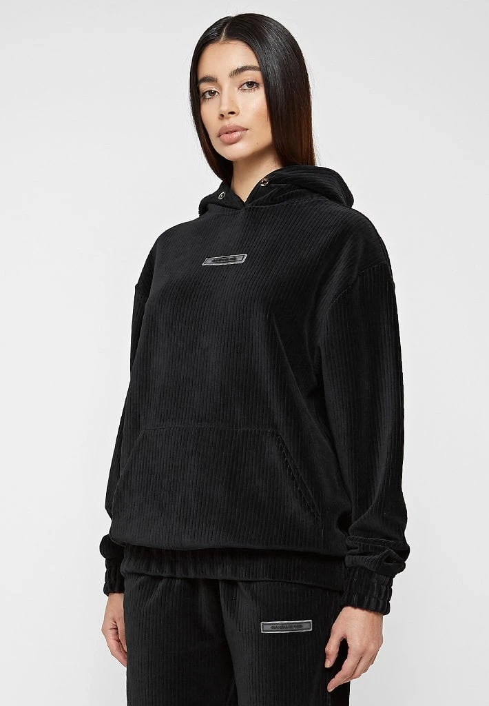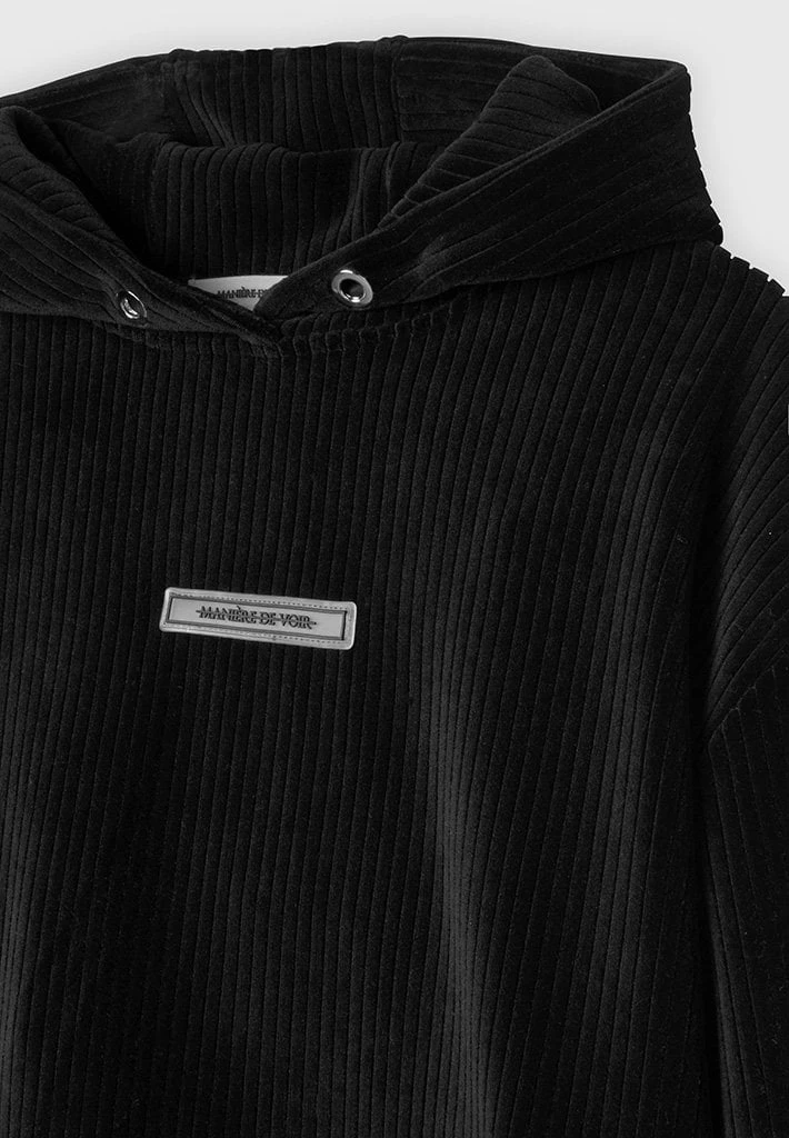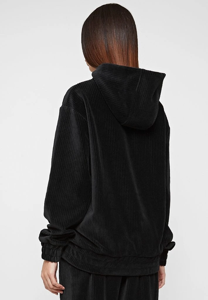 Black Ribbed Velour Hoodie