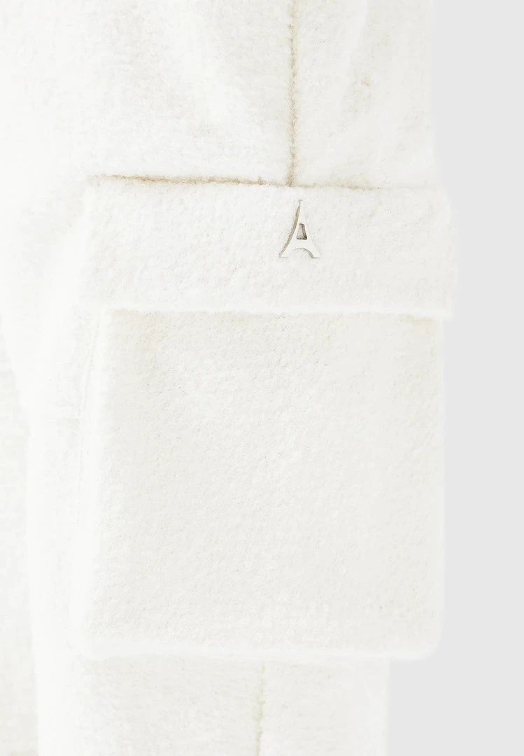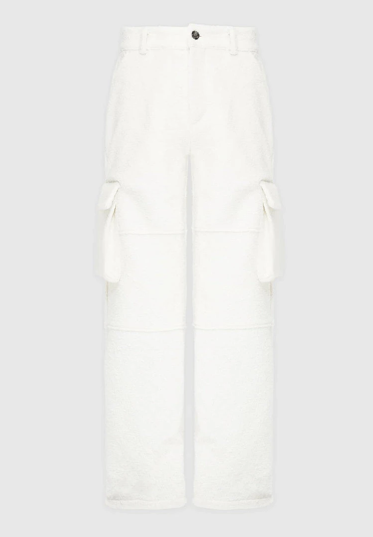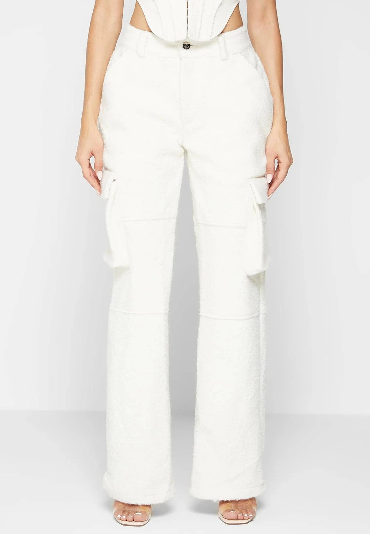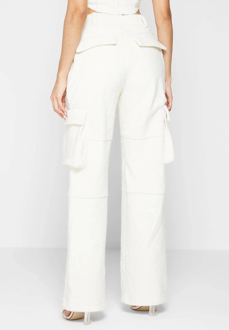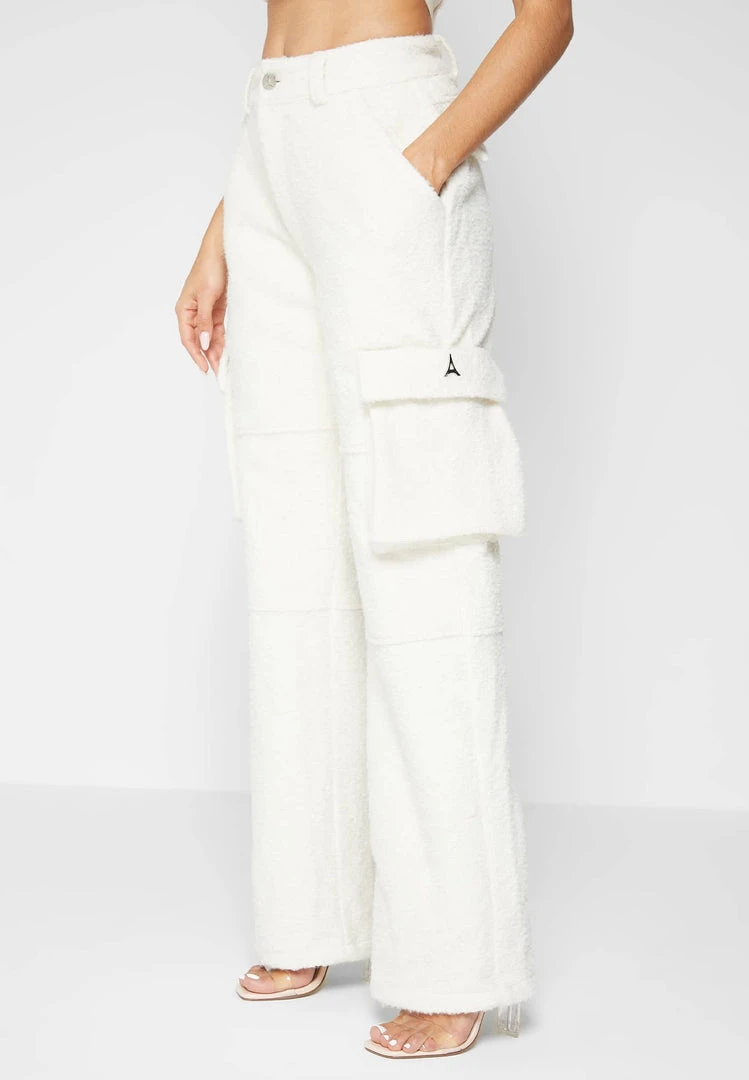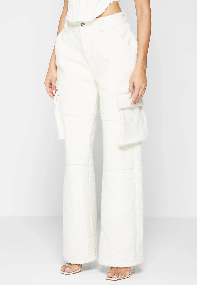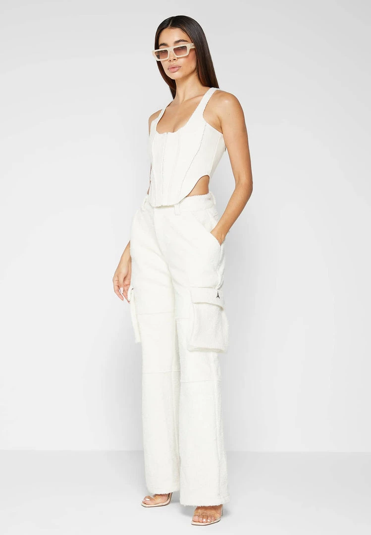 Evaluating the classic cargo pants in supple boucle. The high-rise waist combined with the straight leg silhouette create a flattering shape. Wear with the Boucle Corset Top for an effortless day to night outfit.