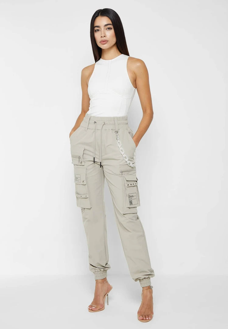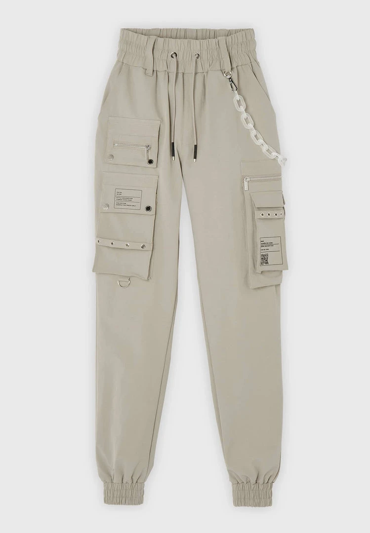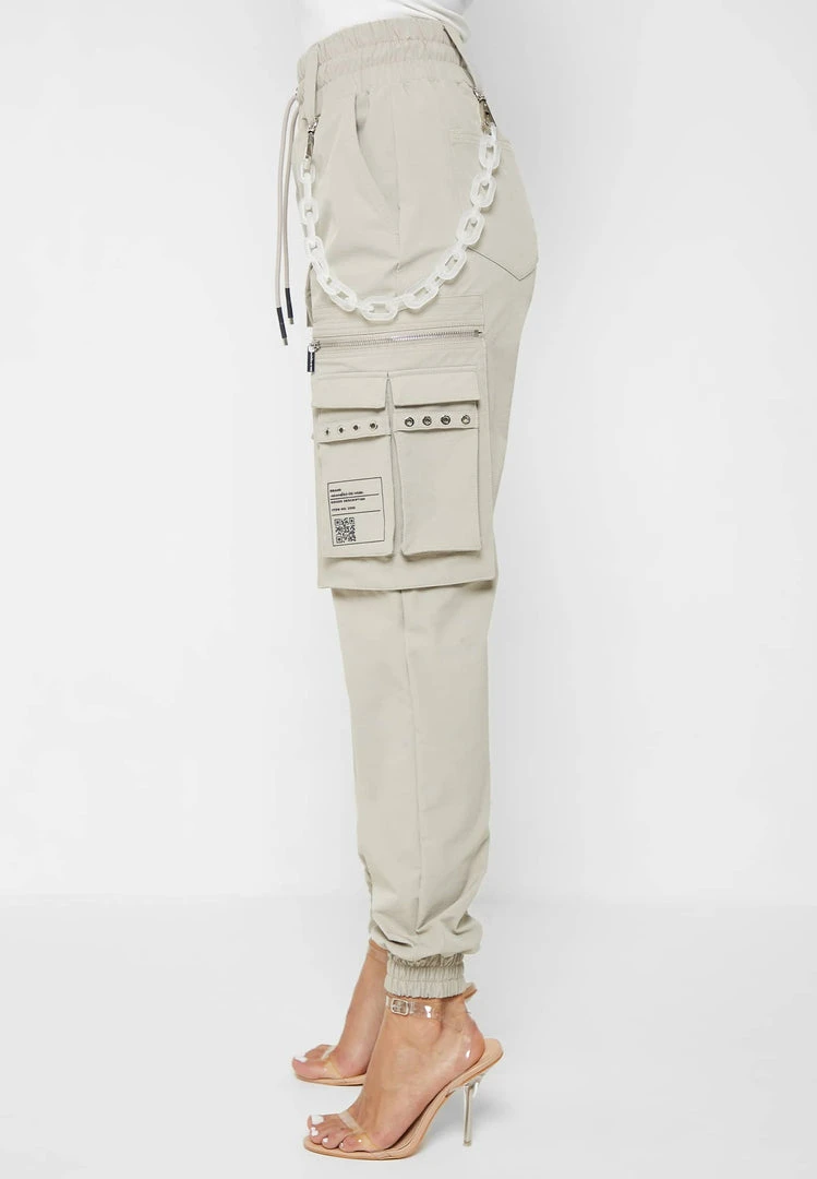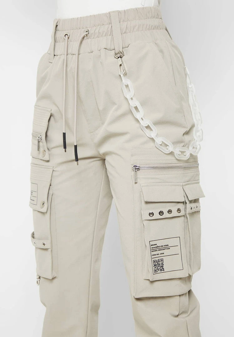 Beige Cargo Pants with Frosted Chain