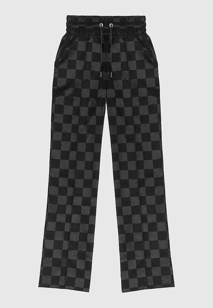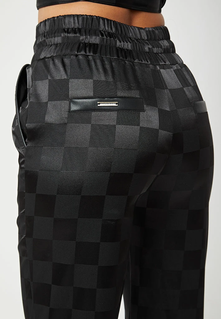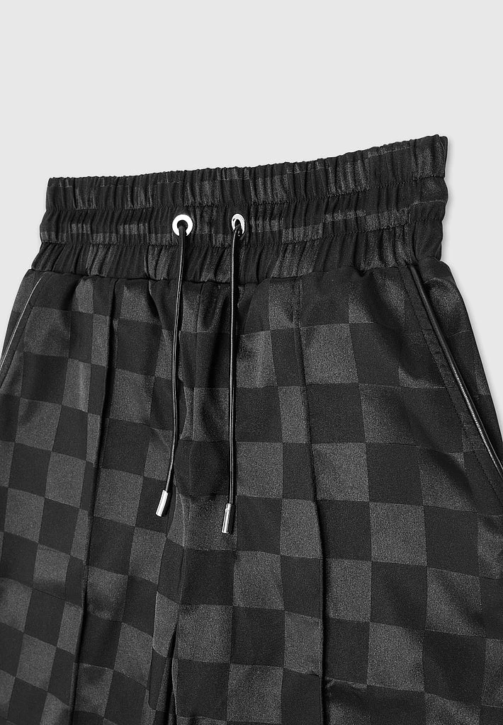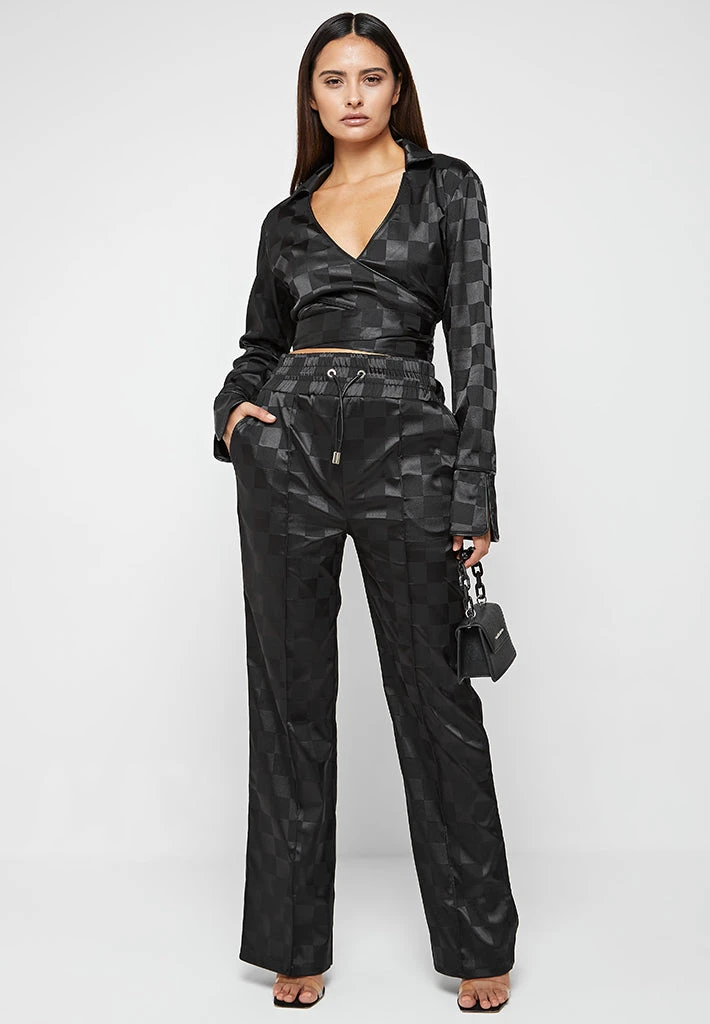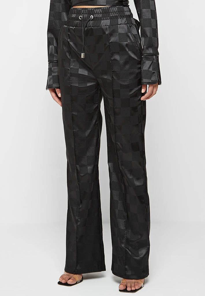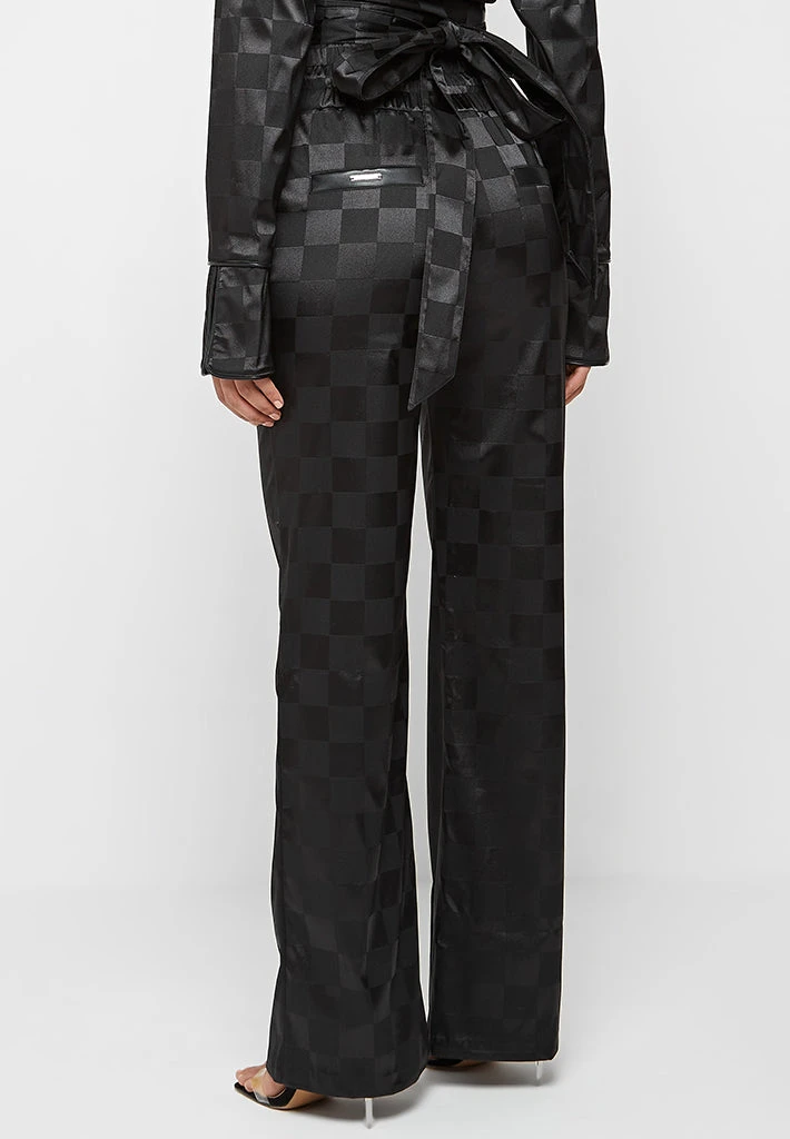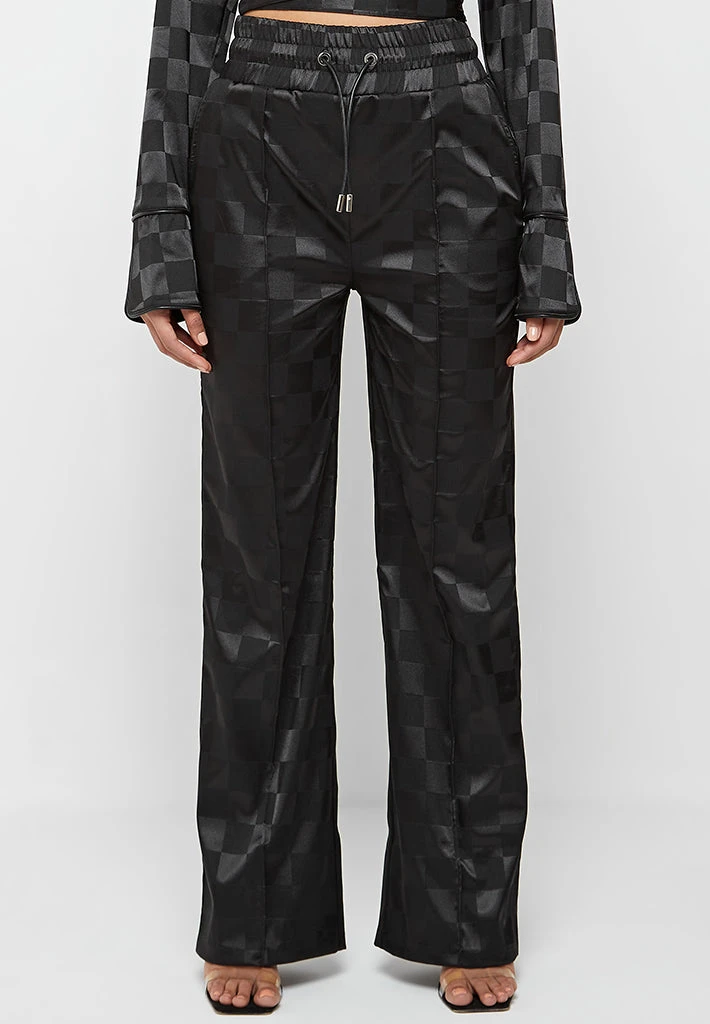 Black Checkered Satin Wide Leg Trousers