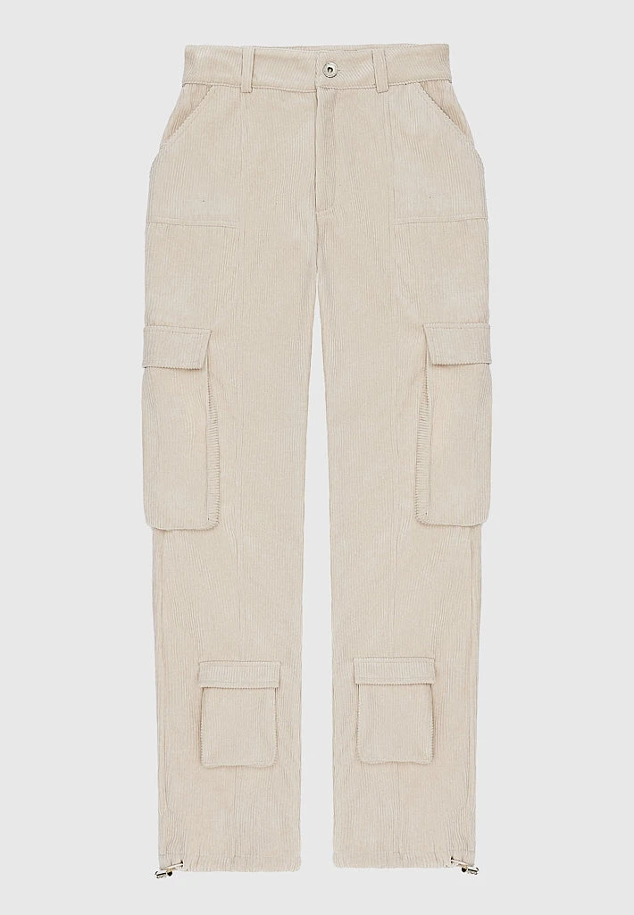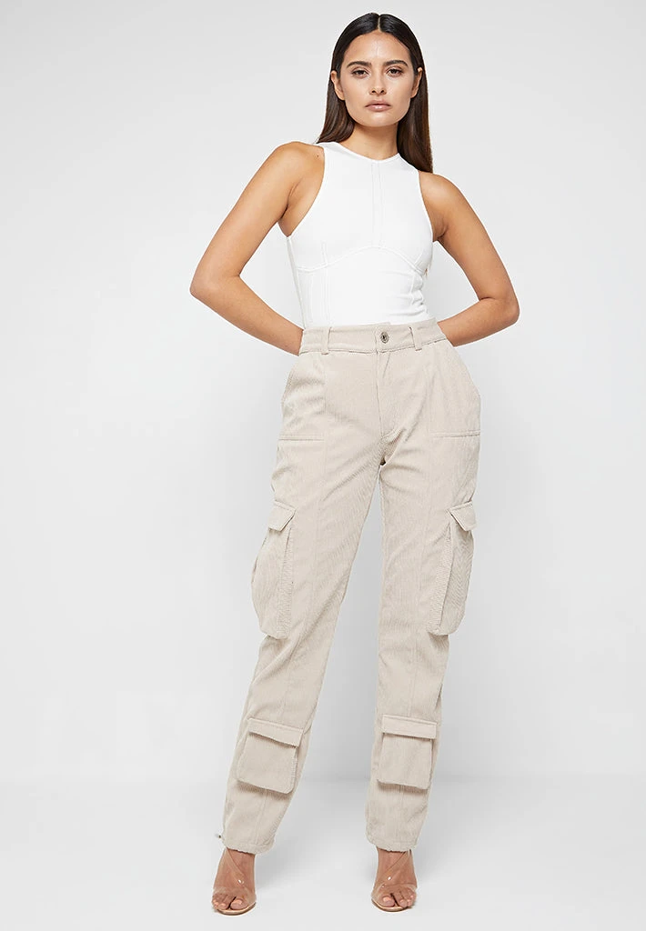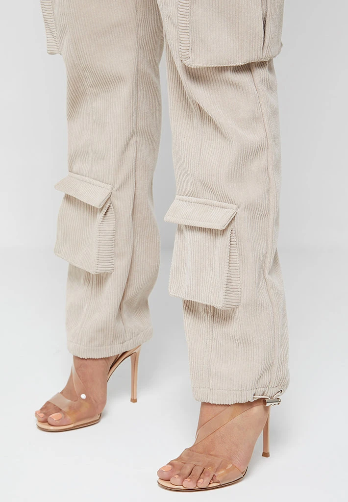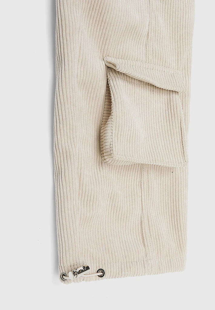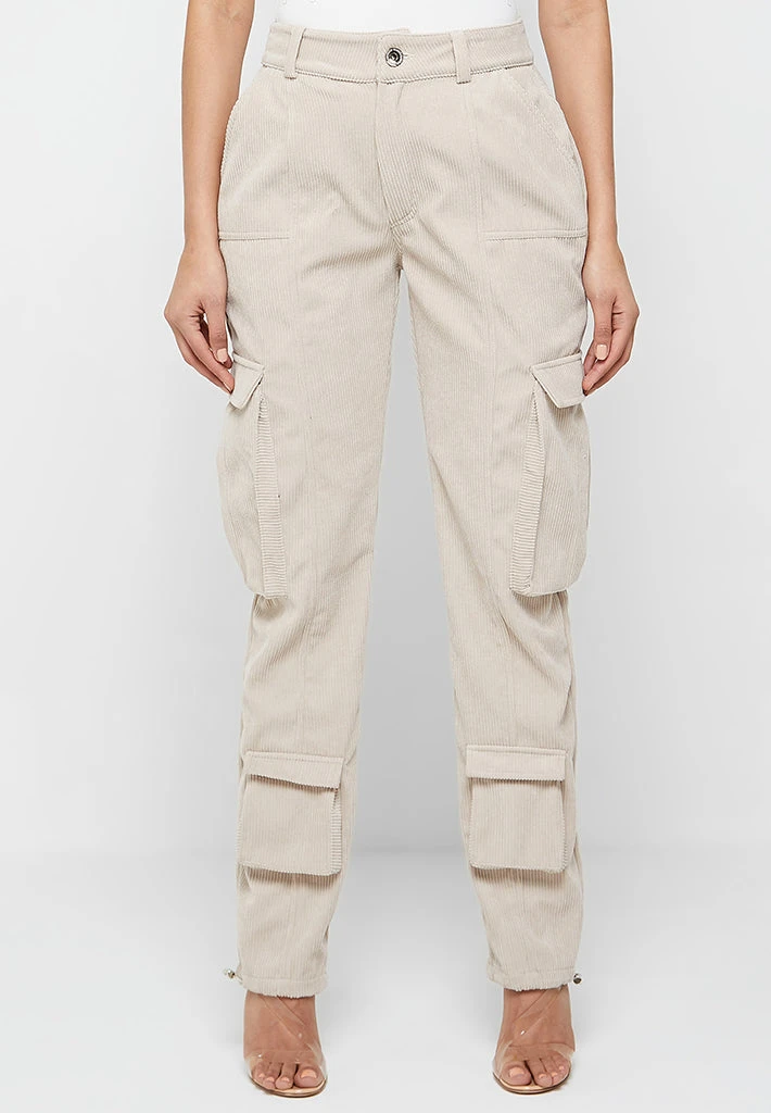 Beige Corduroy Cargo Pants