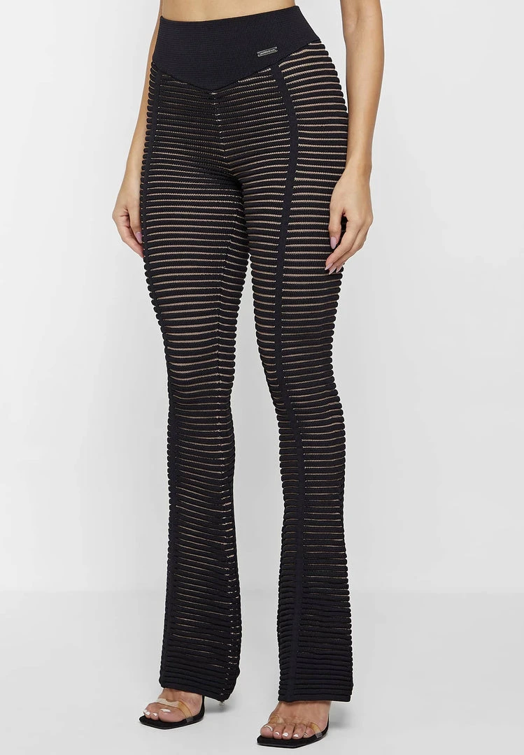 This set works perfectly together to flatter your silhouette. The halterneck top features a curved hem that compliments your bust while the flared trousers feature a thick dipped waistband to cinch your waist.