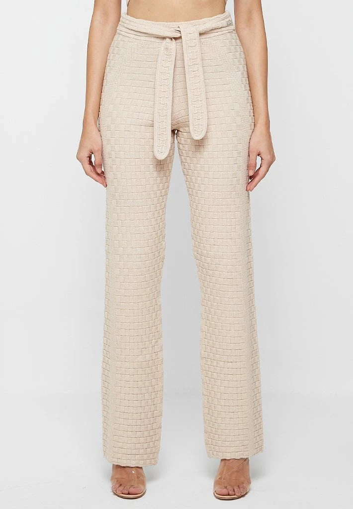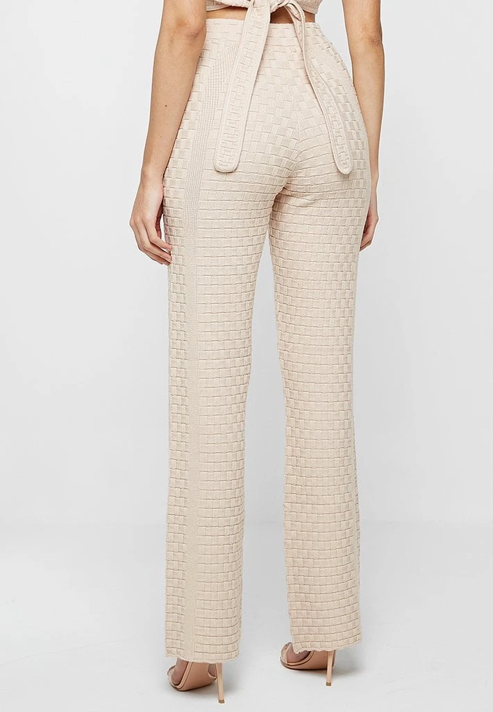 In a basketweave knit texture, these trousers are a versatile style with easy styling for day drinks or a night out. The stretch knit ensures these sit perfectly on the body and accentuate the figure.