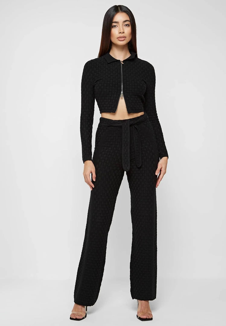 In a basketweave knit texture, these trousers are a versatile style with easy styling for day drinks or a night out. The stretch knit ensures these sit perfectly on the body and accentuate the figure.