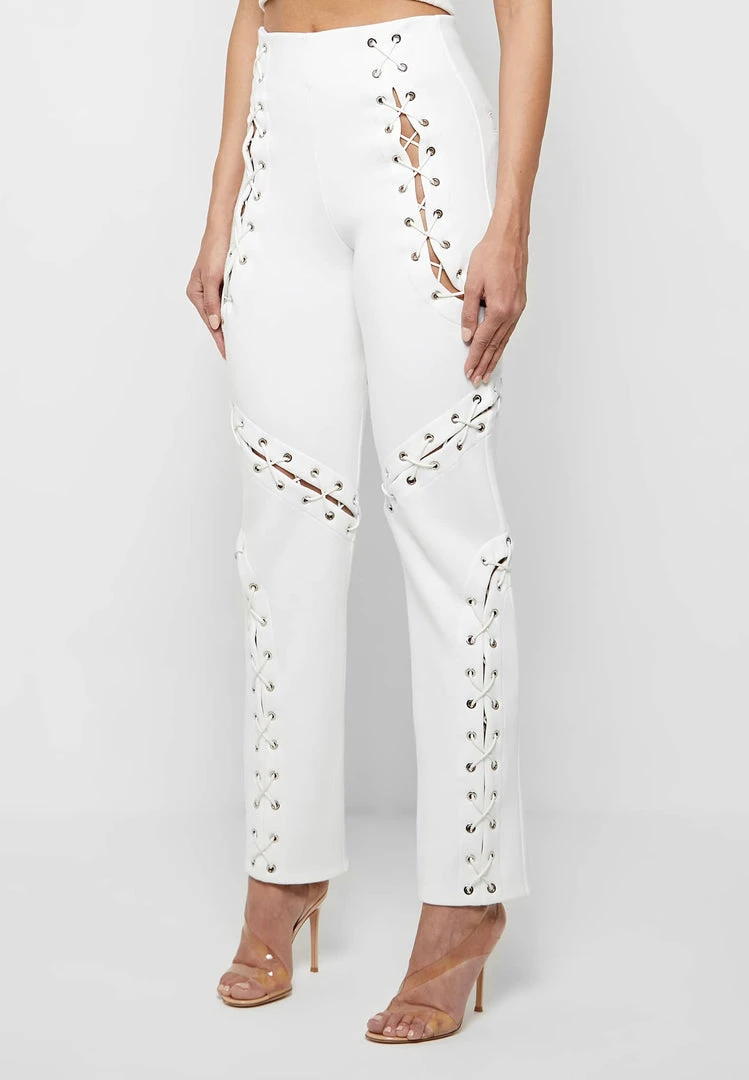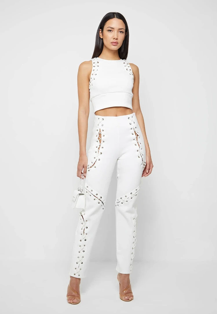 This 3-piece Lace Up Jogger set provides a high fashion twist on loungewear that can be worn with heels to create a smart/casual jogger set.