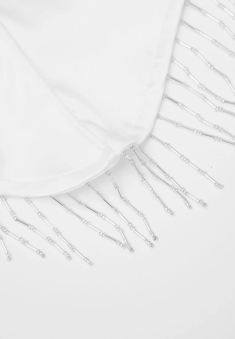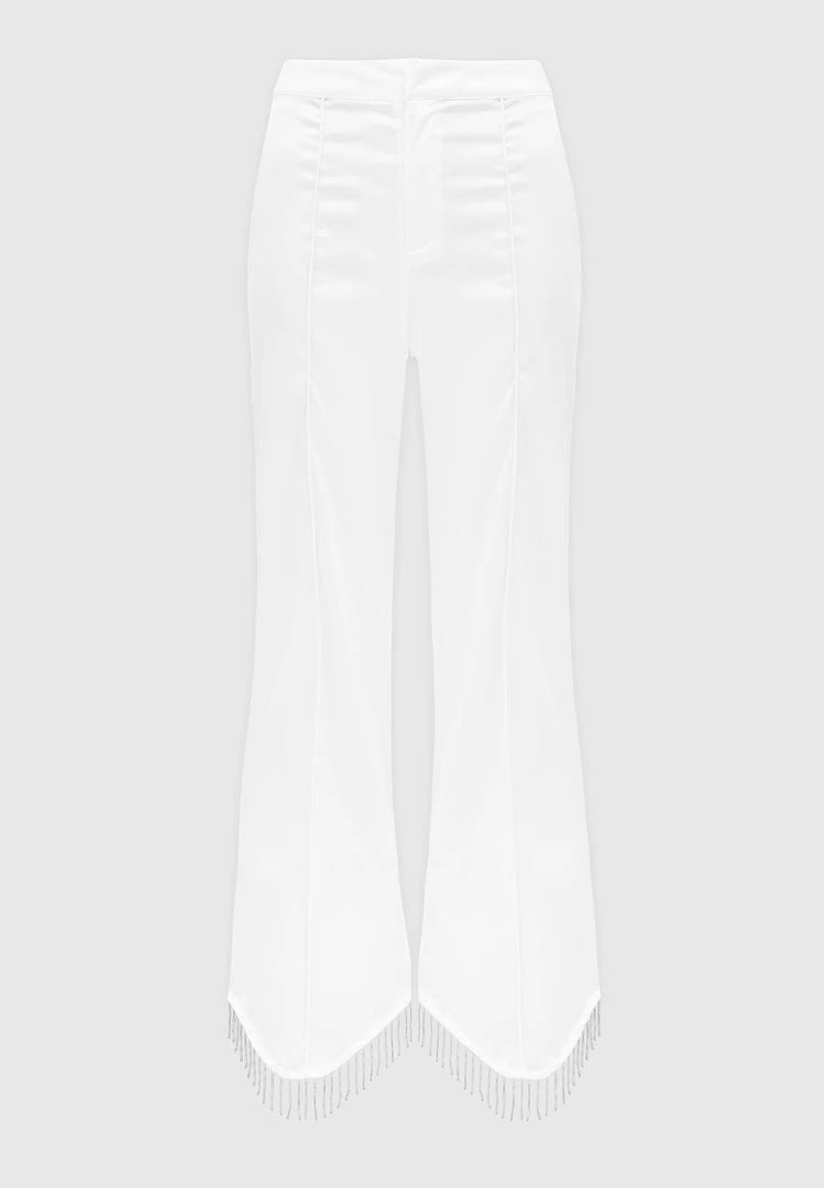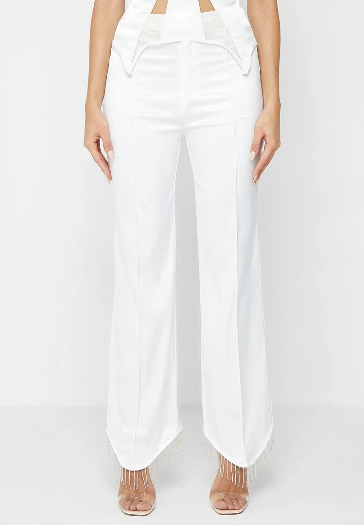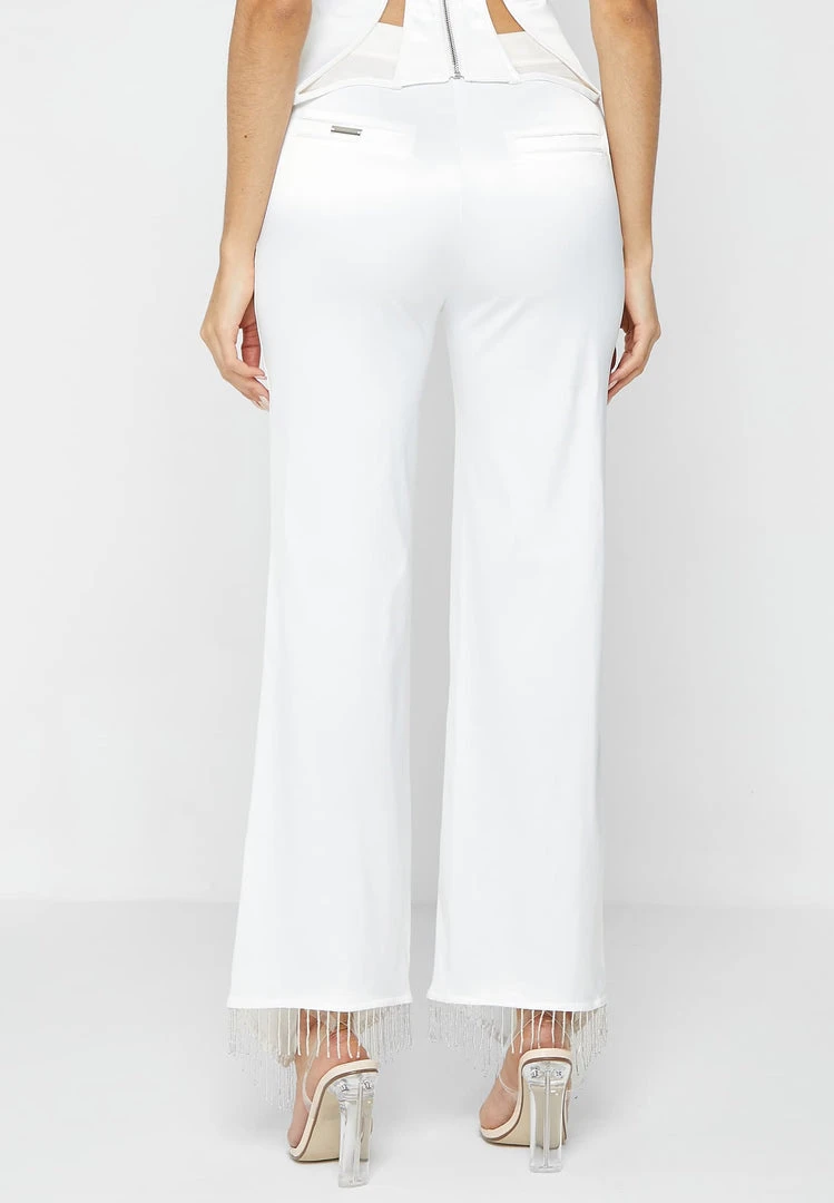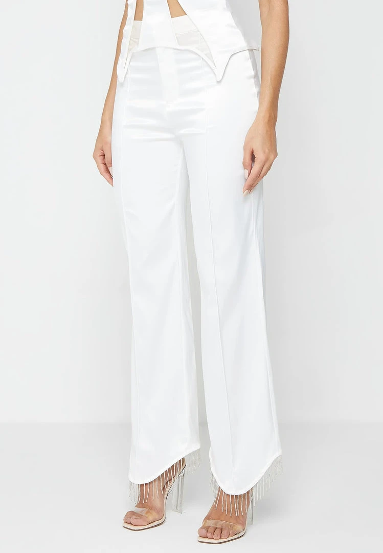 White Satin Trousers with Beaded Fringe