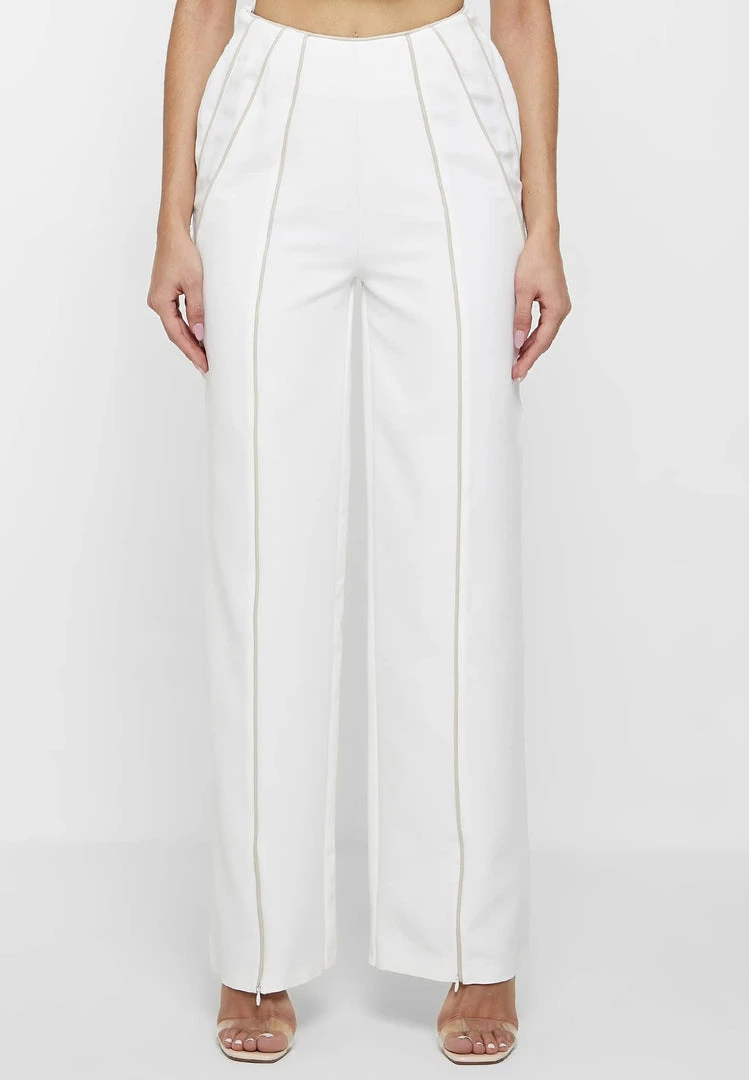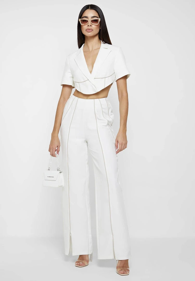 White/Beige Tailored Corset Detail Trousers