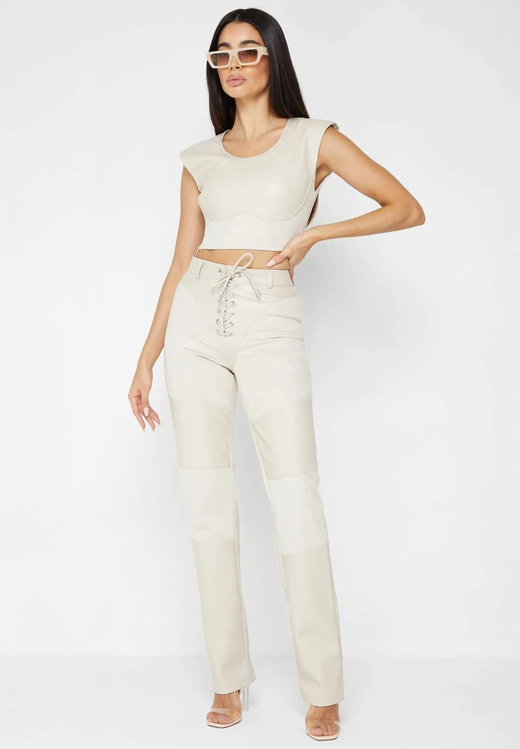 A twist on the classic leather trousers, these trousers offer a more stylish and unique take on a classic staple. These trousers can be styled with any crop top for an effortless evening look.