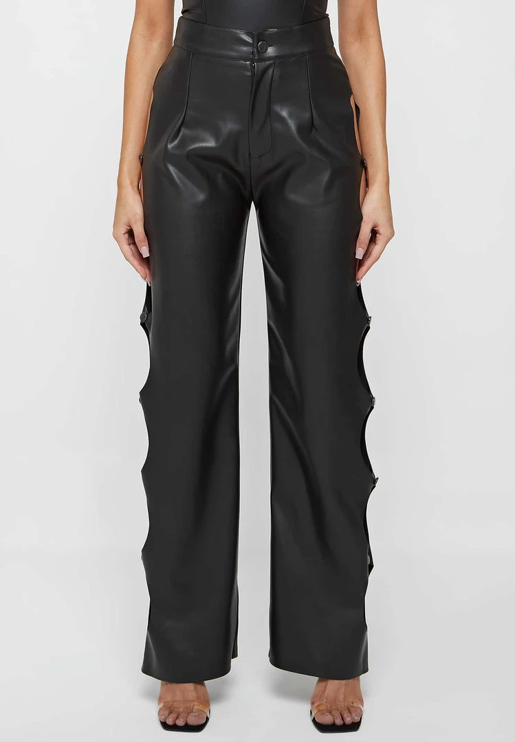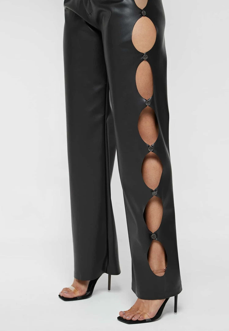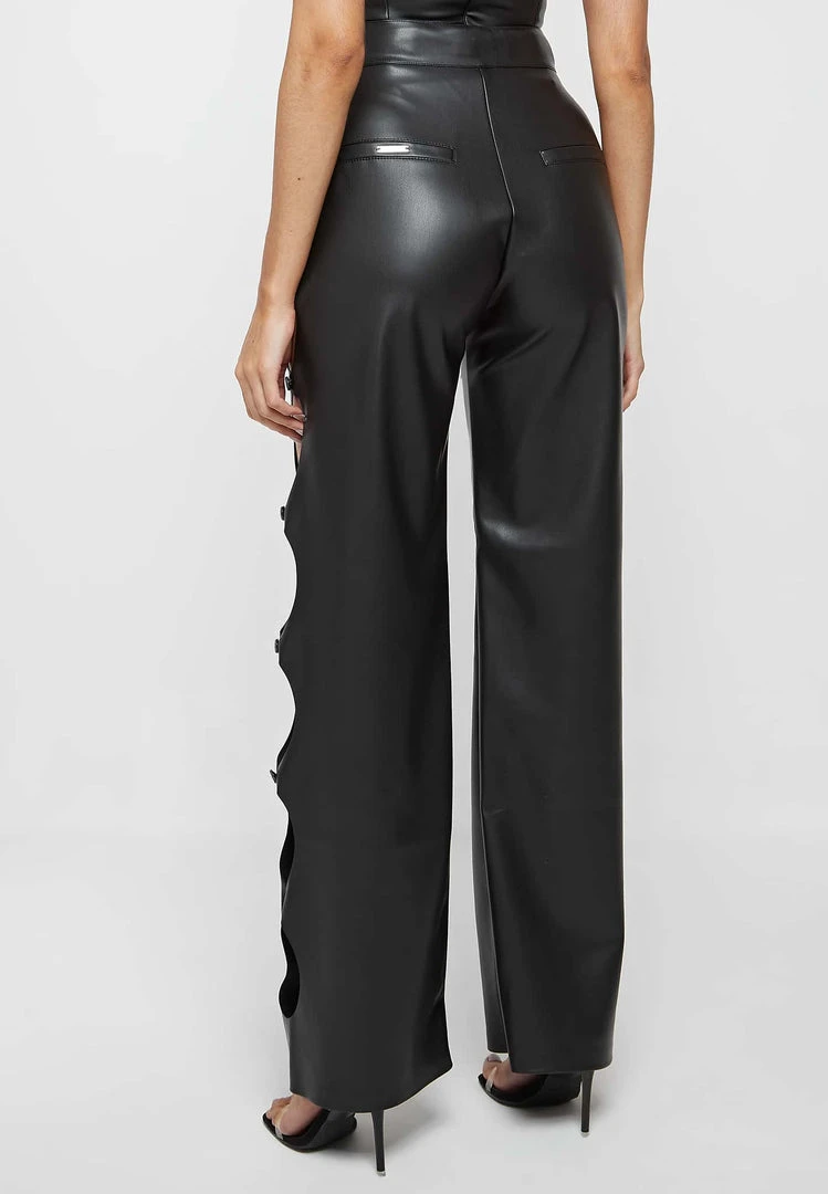 Black Vegan Leather Cut Out Trousers