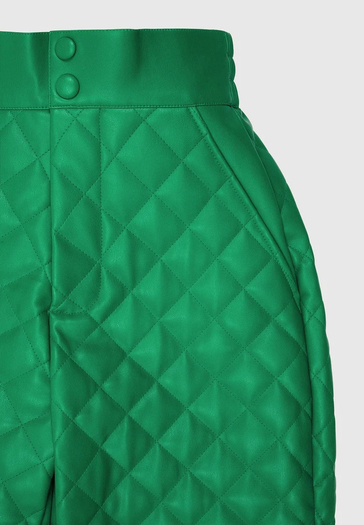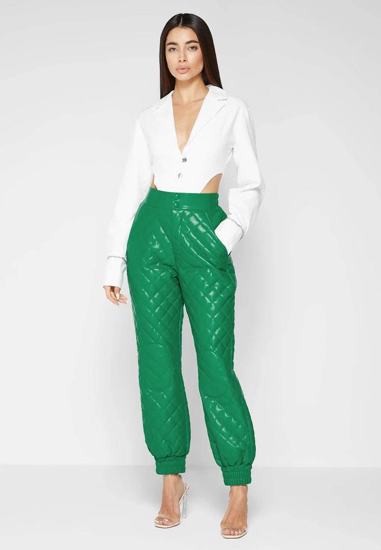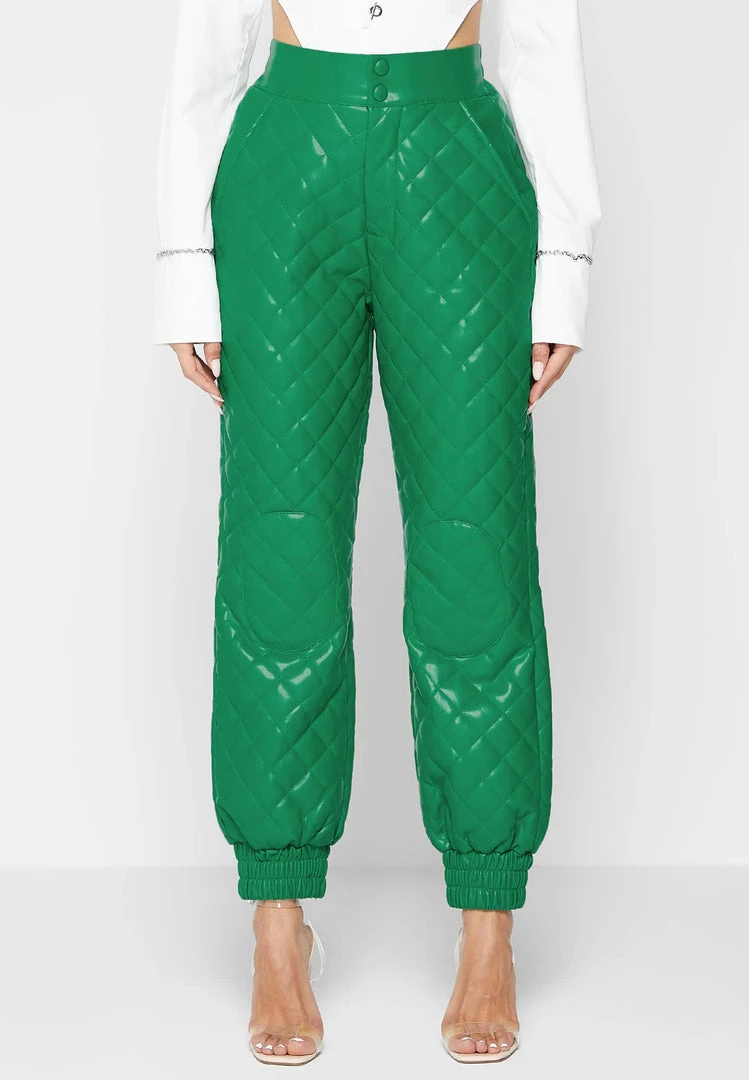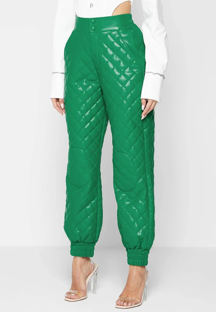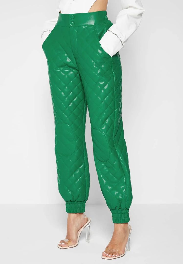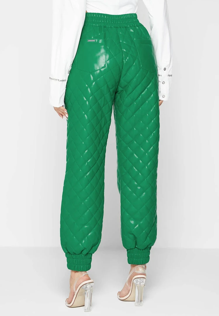 Green Vegan Leather Quilted Joggers
