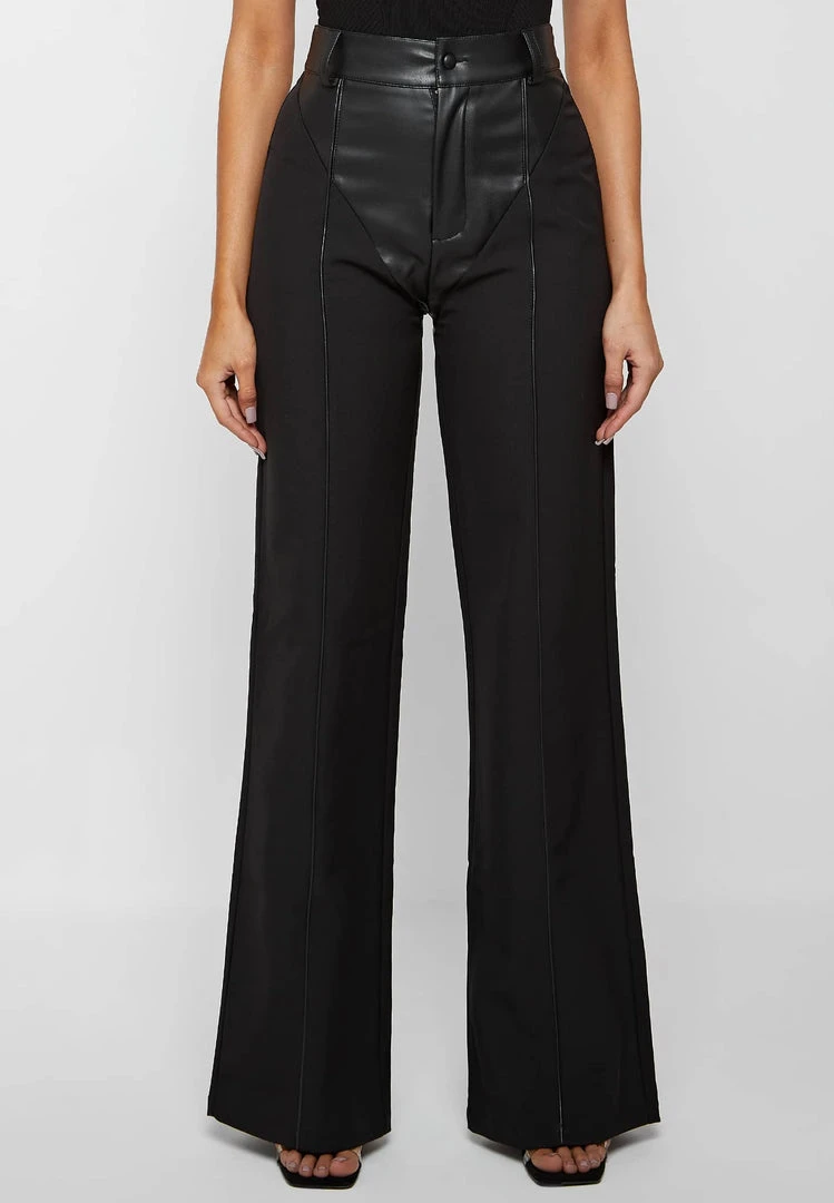 An elevation of the classic straight leg trouser silhouette, these feature a vegan leather knicker section to make these a versatile day to night style.