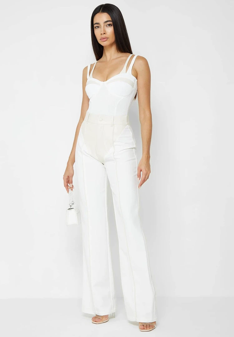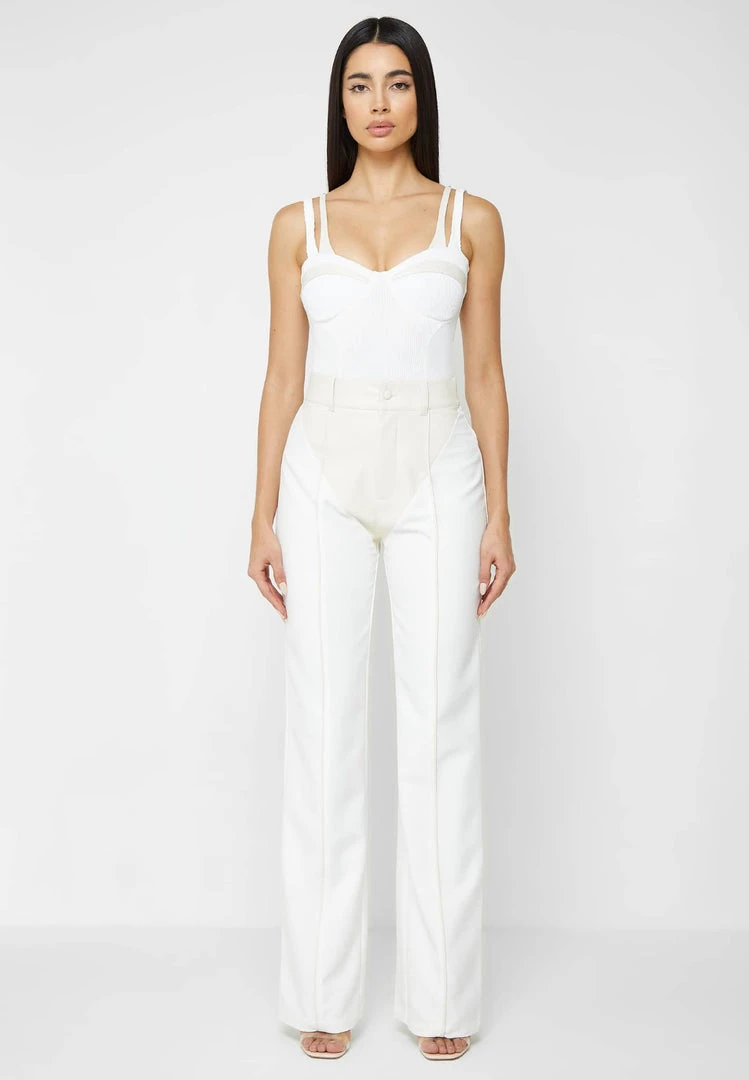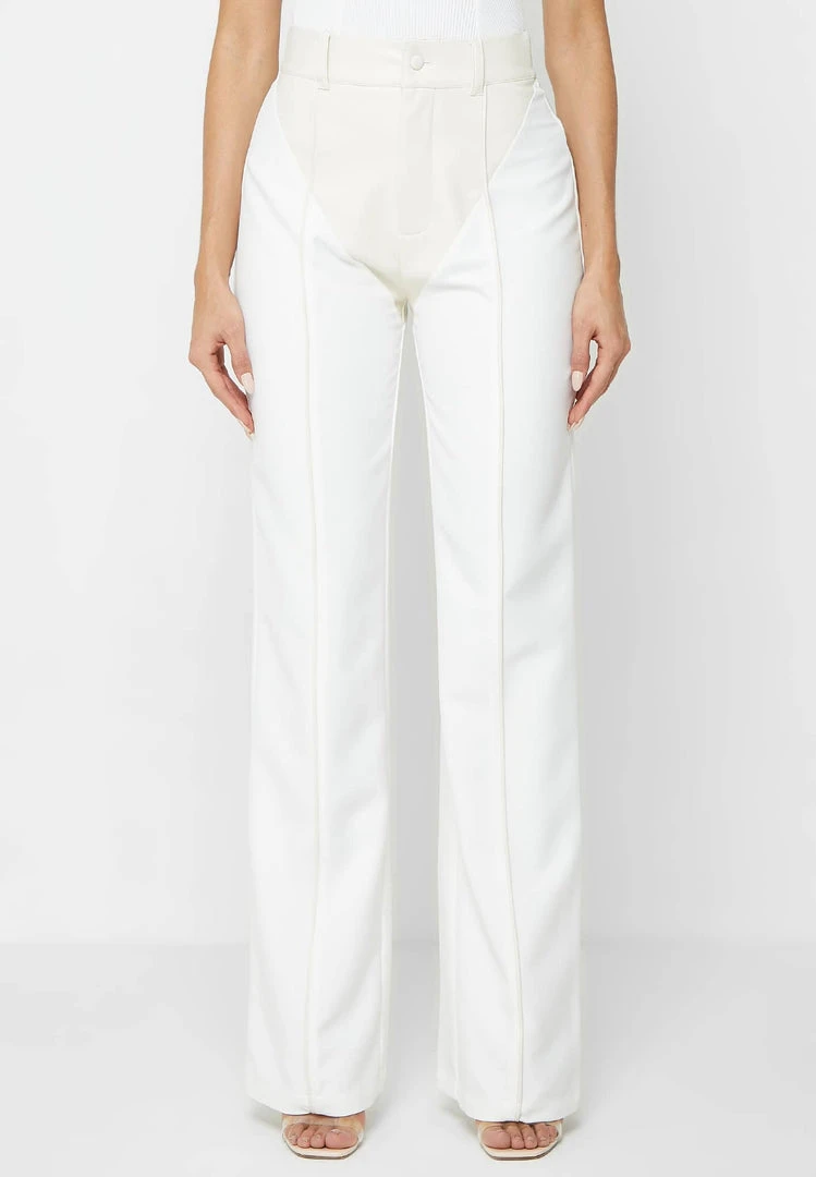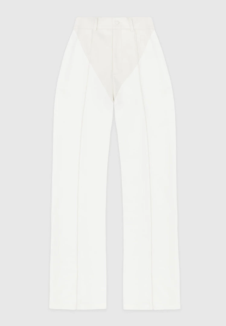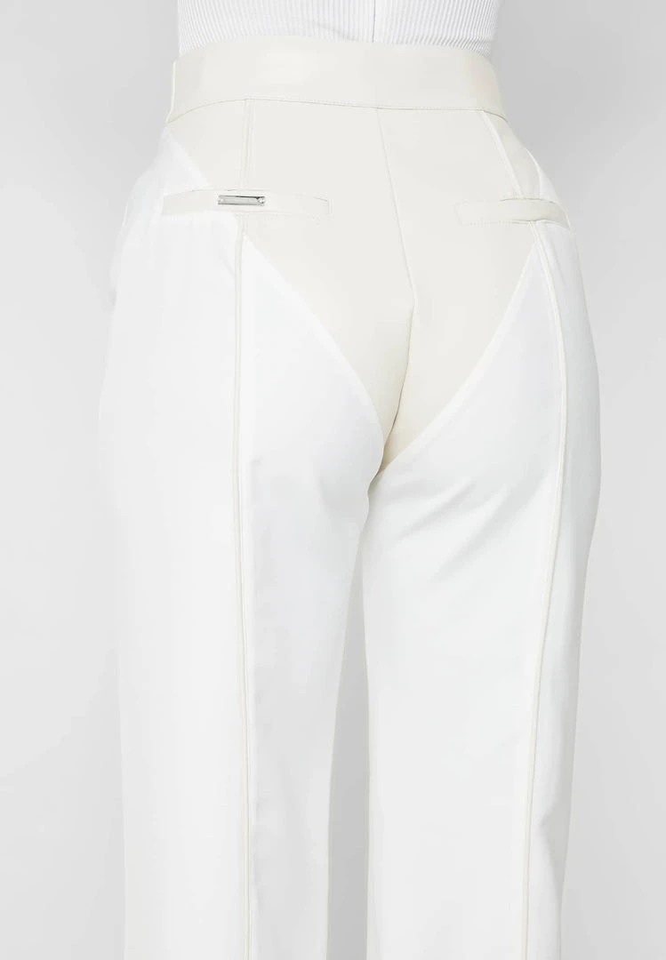 An elevation of the classic straight leg trouser silhouette, these feature a vegan leather knicker section to make these a versatile day to night style.